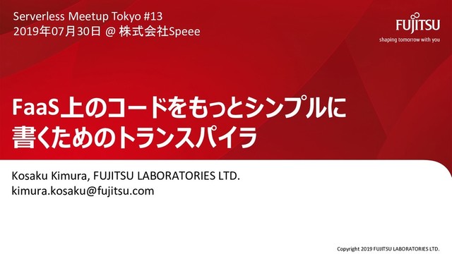 FaaS上のコードをもっとシンプルに 書くためのトランスパイラ Kosaku Kimura, FUJITSU LABORATORIES LTD.
