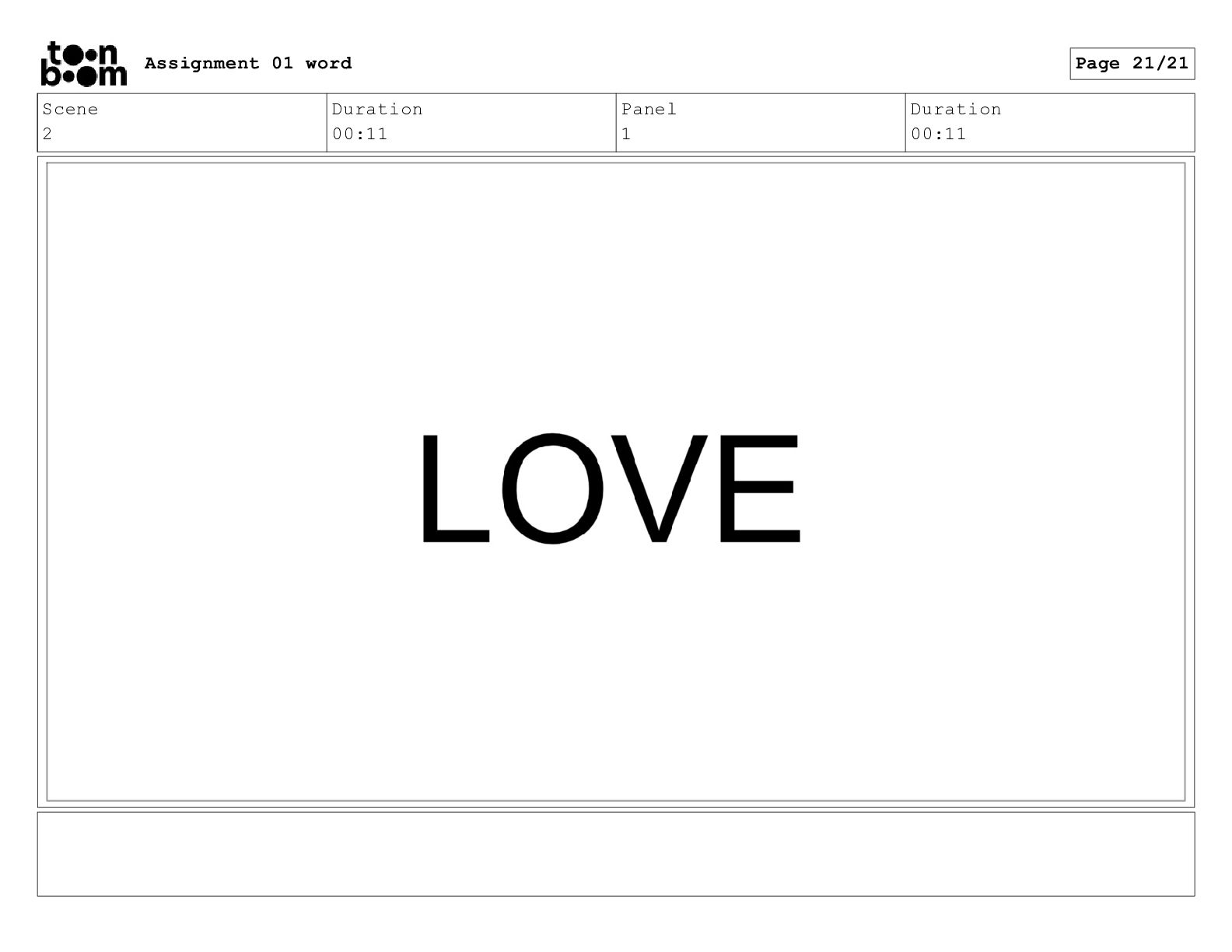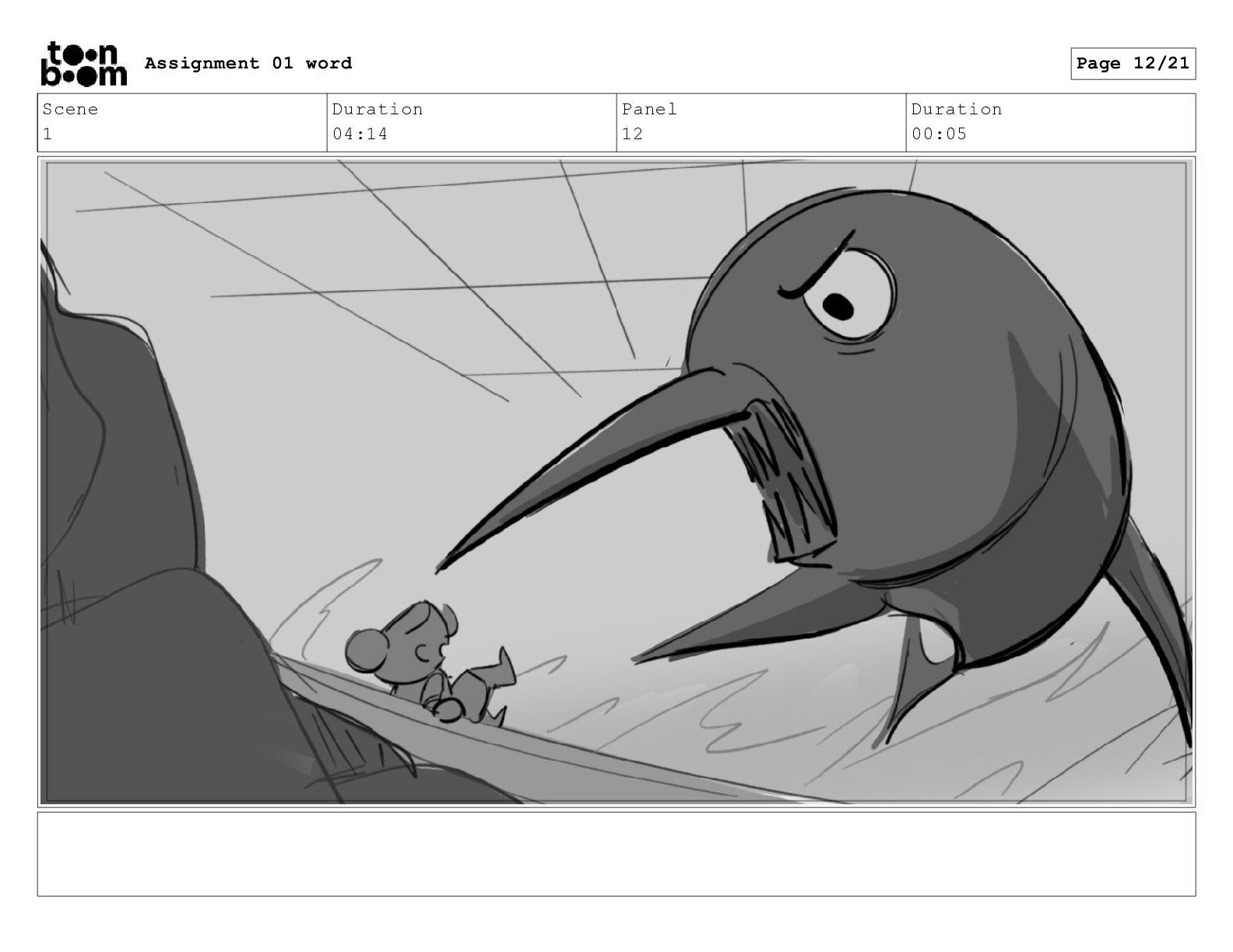 Scene 2 Duration 00:11 Panel 1 Duration 00:11 Assignment 01