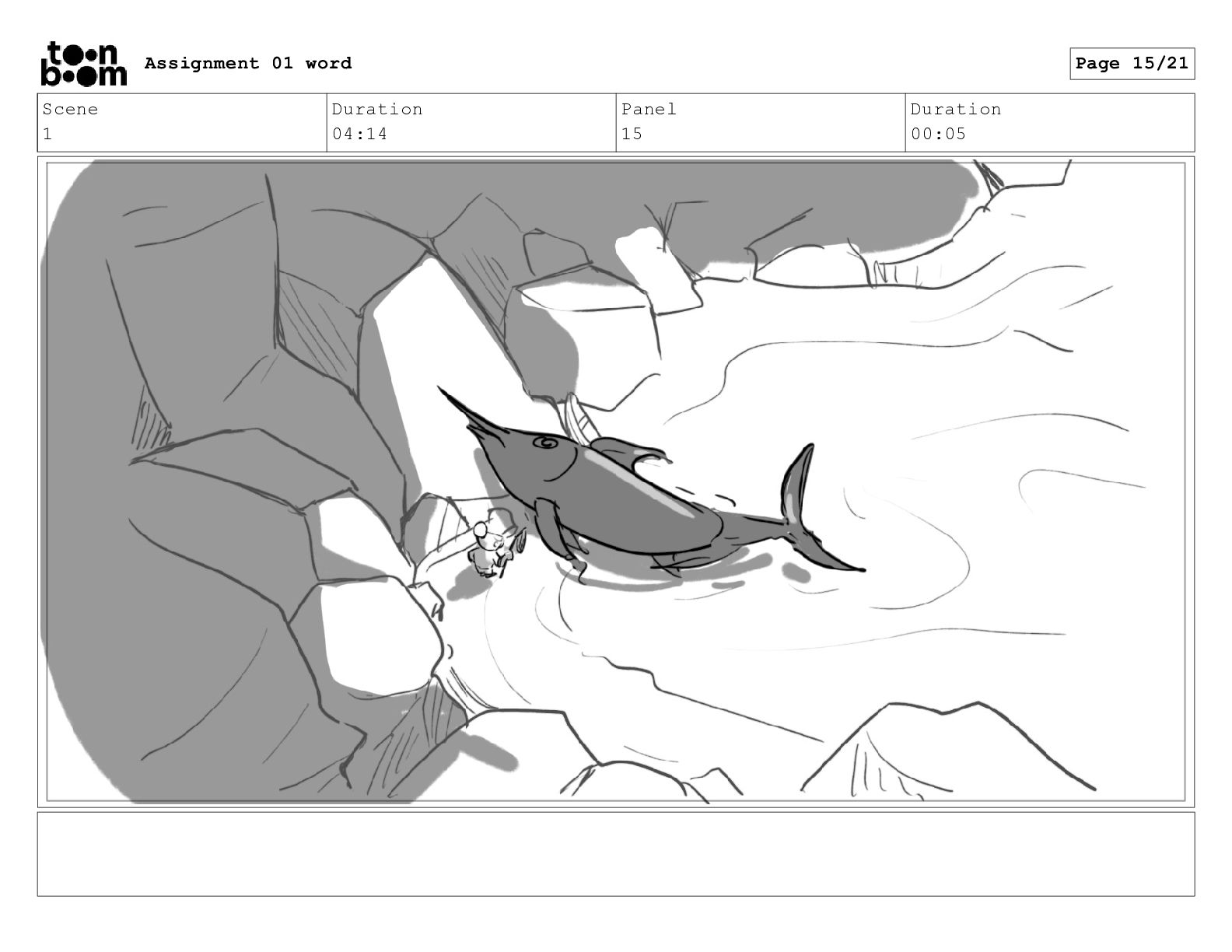Scene 1 Duration 04:14 Panel 15 Duration 00:05 Assignment 01