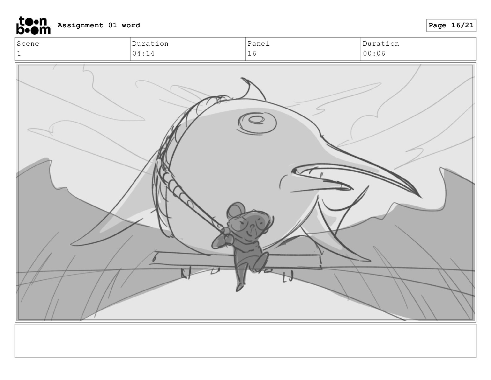 Scene 1 Duration 04:14 Panel 16 Duration 00:06 Assignment 01
