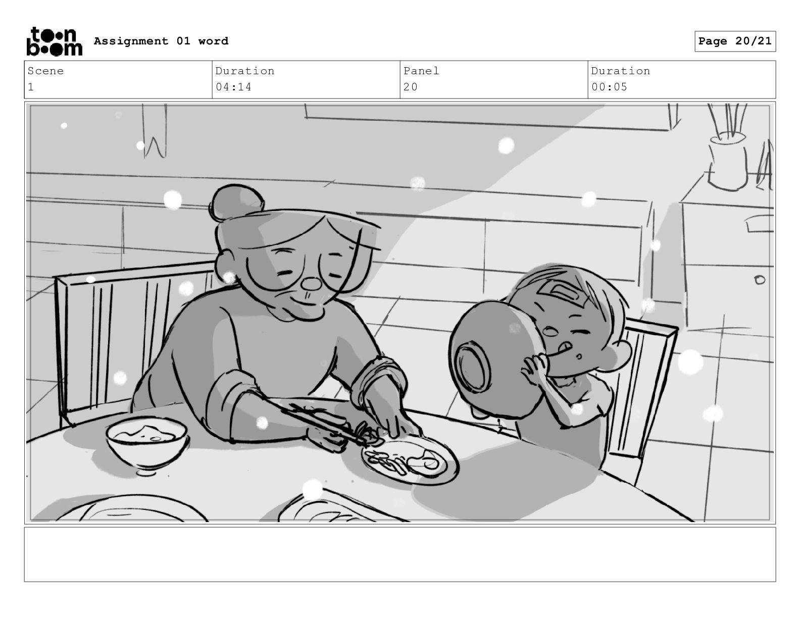 Scene 1 Duration 04:14 Panel 20 Duration 00:05 Assignment 01