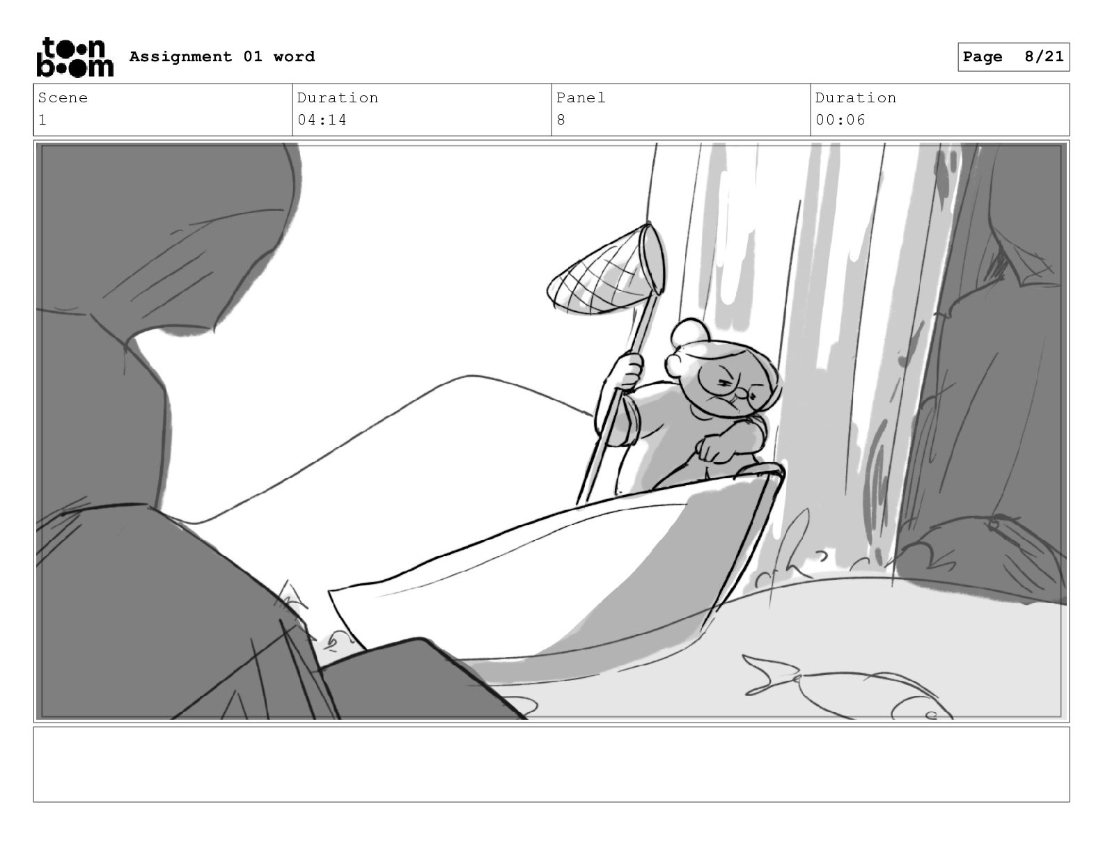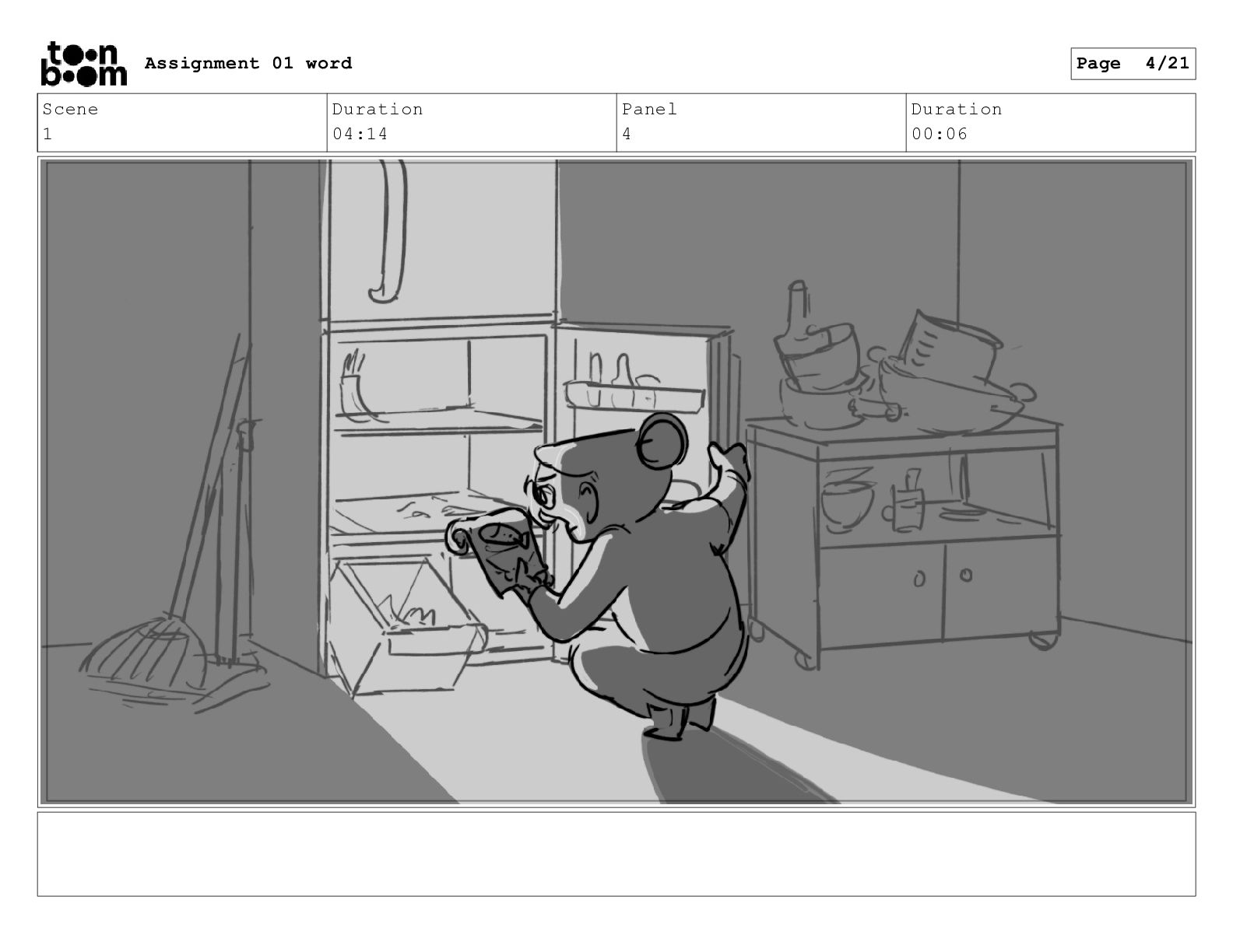 Scene 1 Duration 04:14 Panel 8 Duration 00:06 Assignment 01