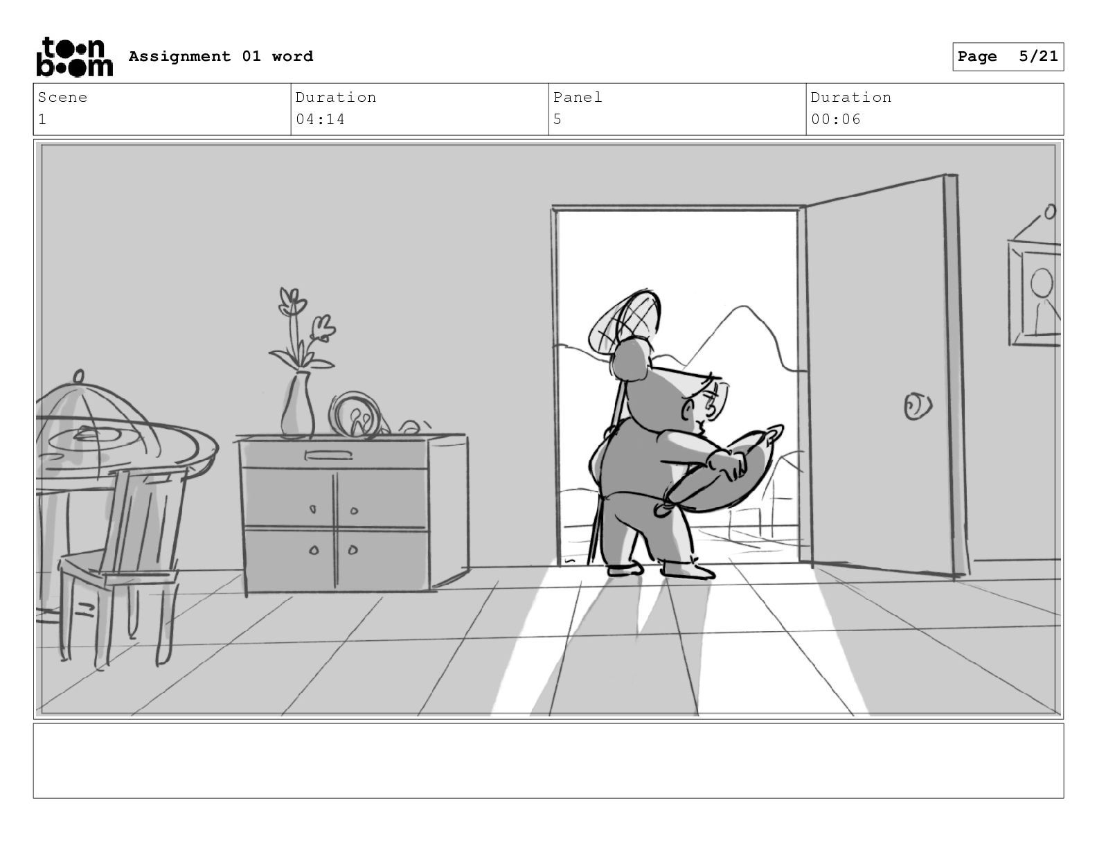 Scene 1 Duration 04:14 Panel 5 Duration 00:06 Assignment 01