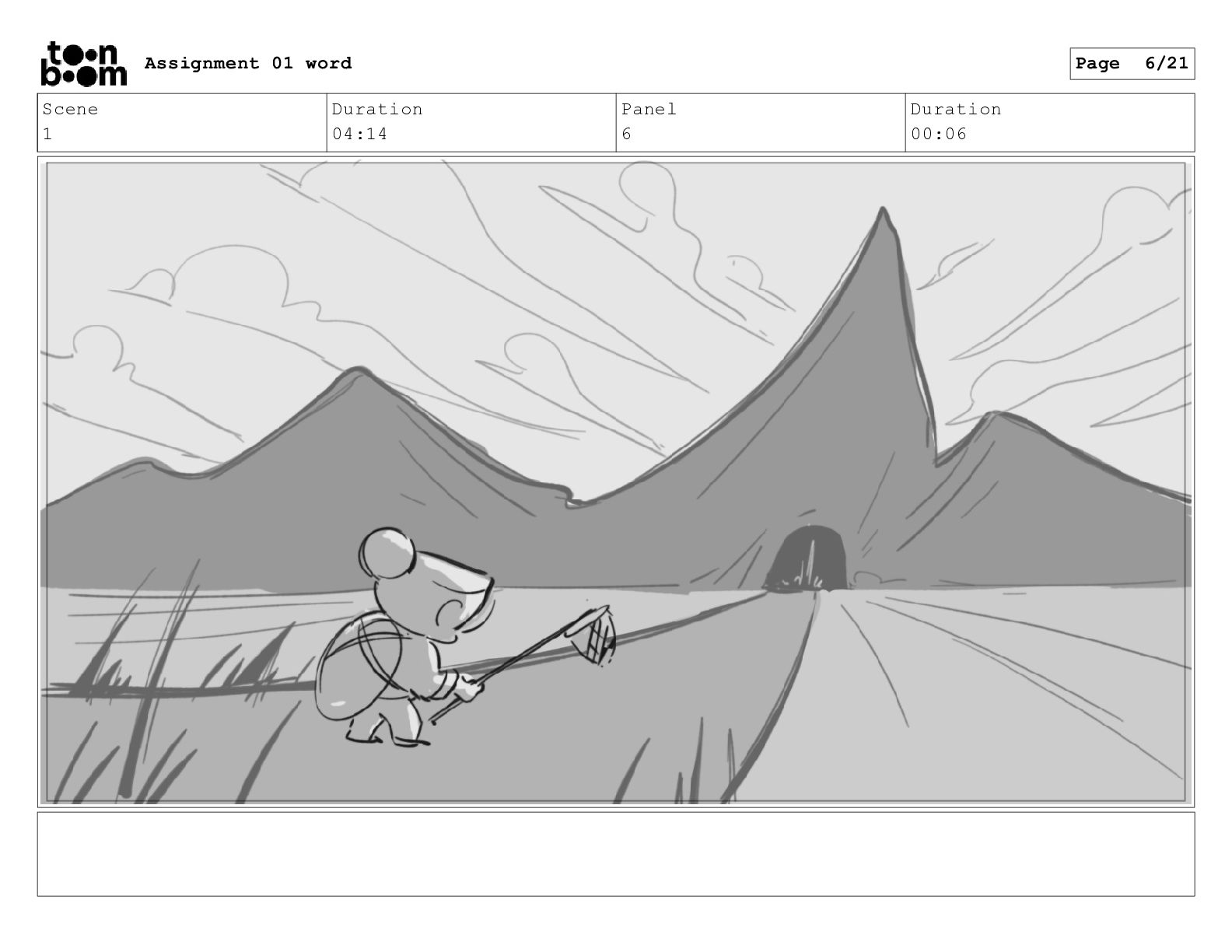Scene 1 Duration 04:14 Panel 6 Duration 00:06 Assignment 01