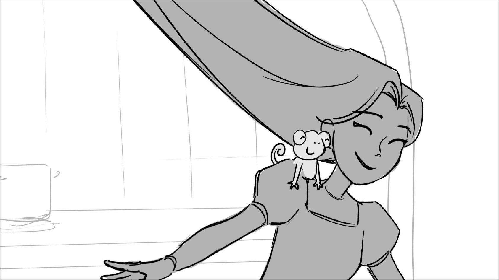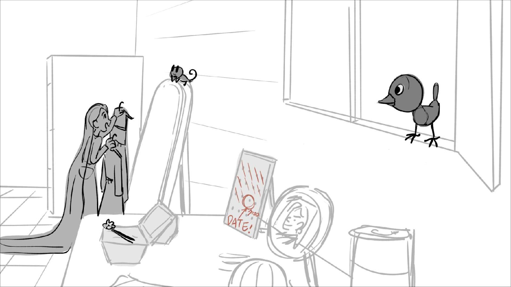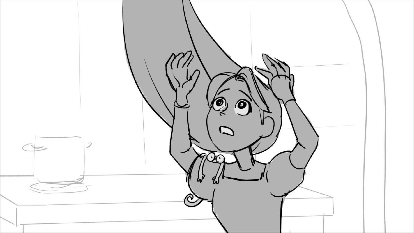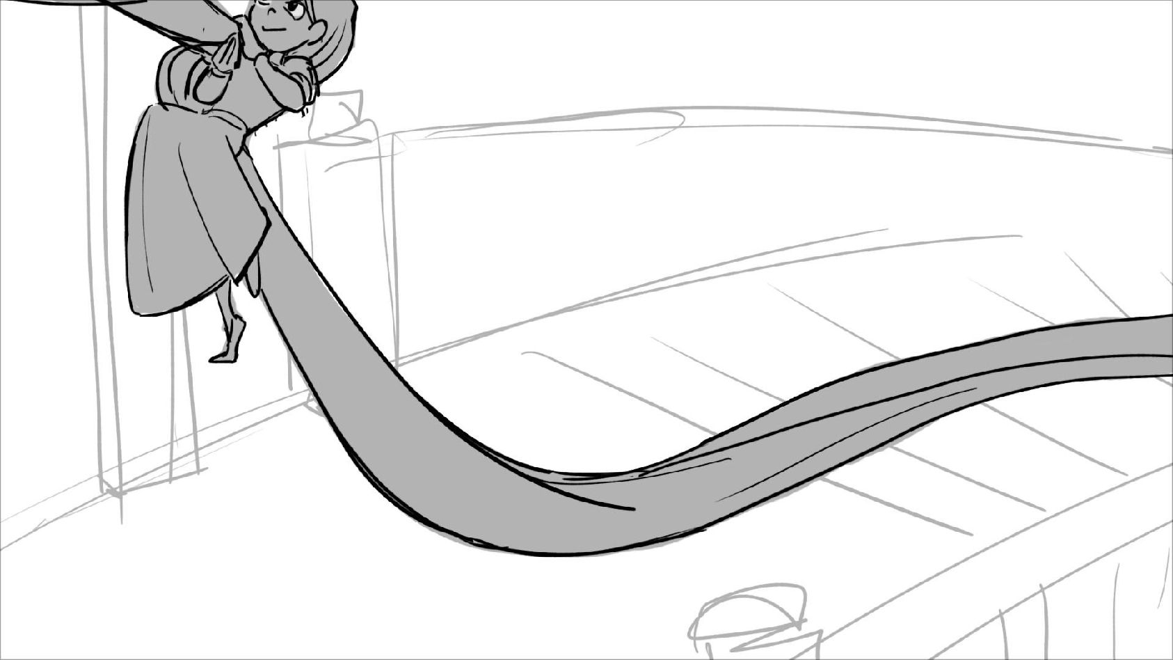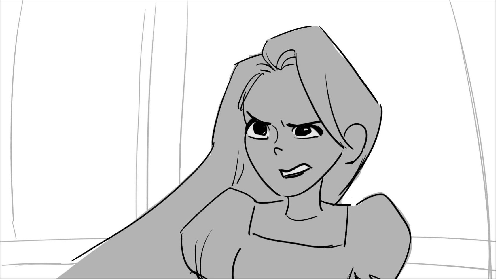 Using character's from "Tangled". A comedy scene of Rapunzel getting ready for a date to meet Eugene.