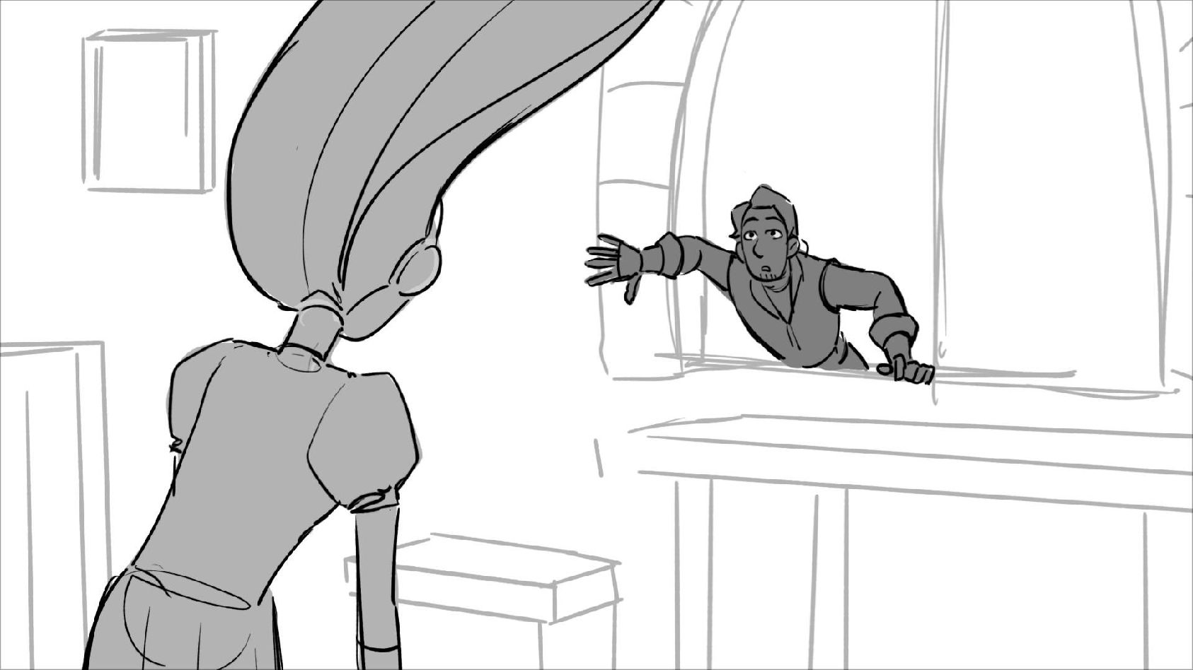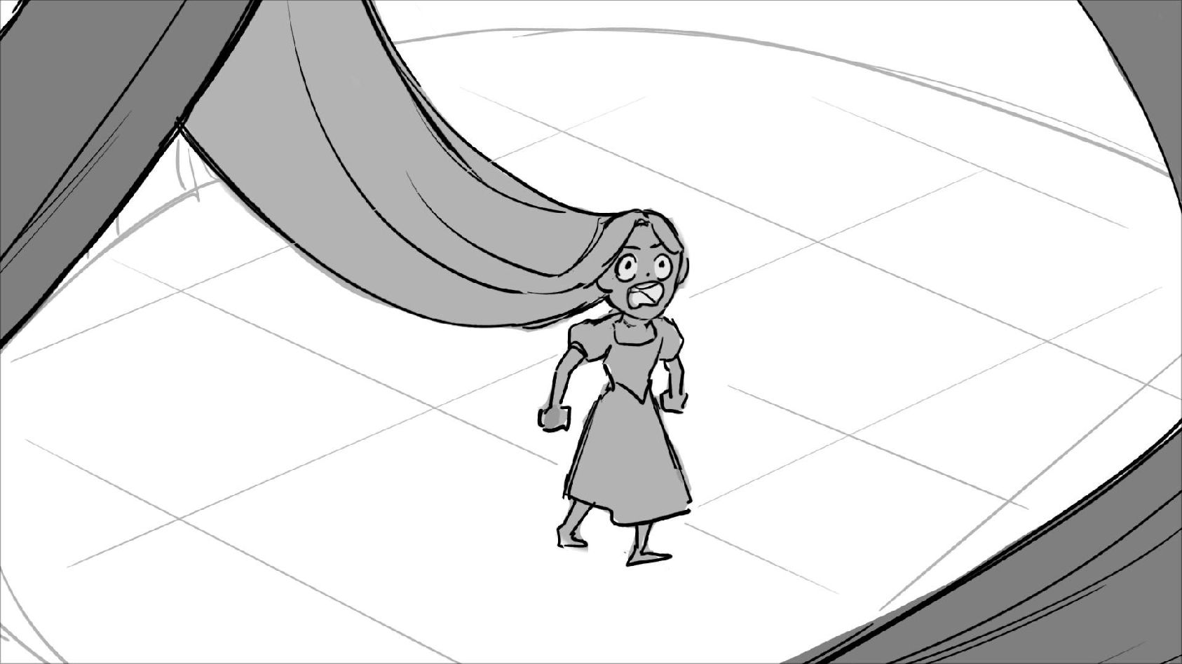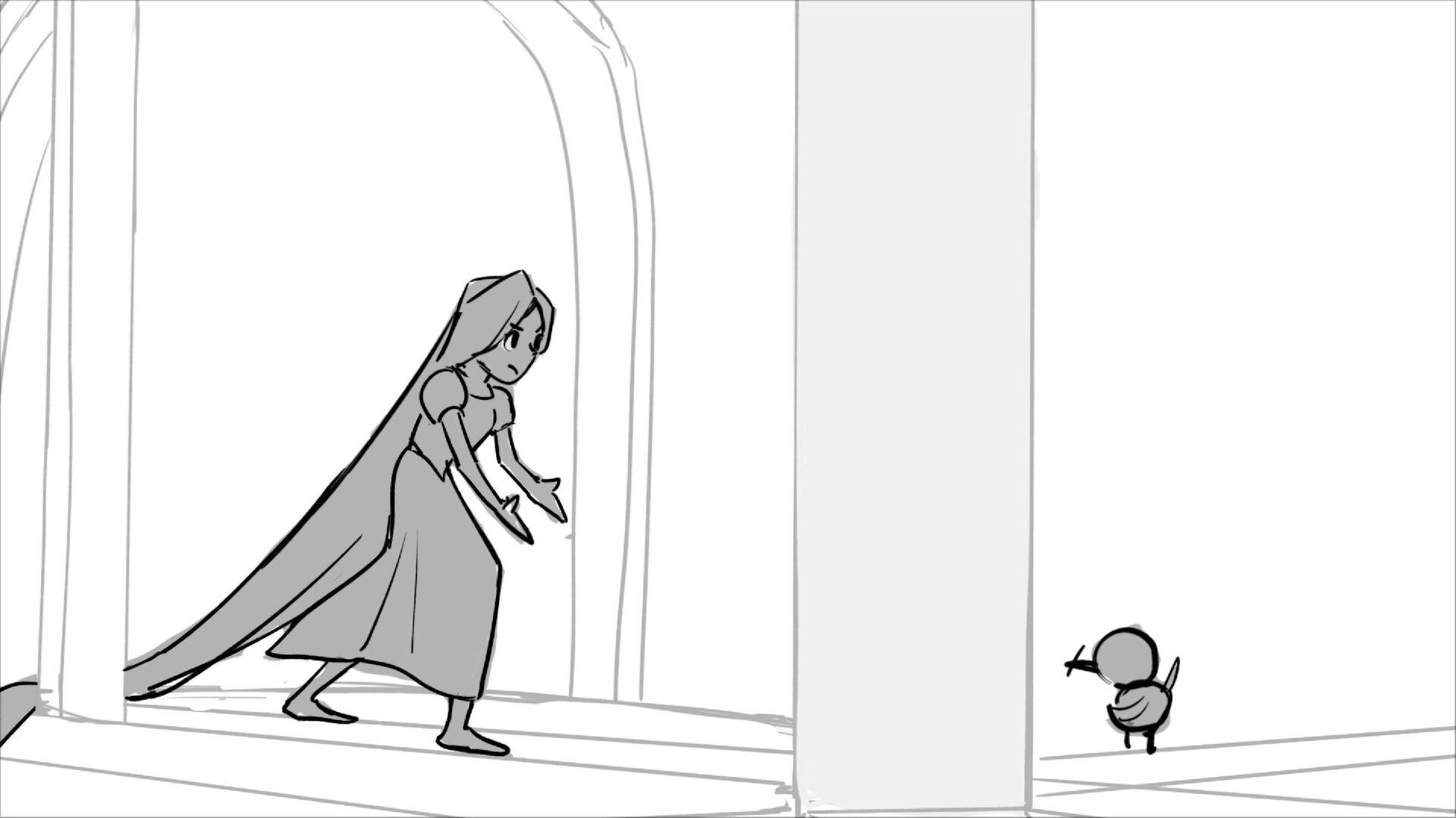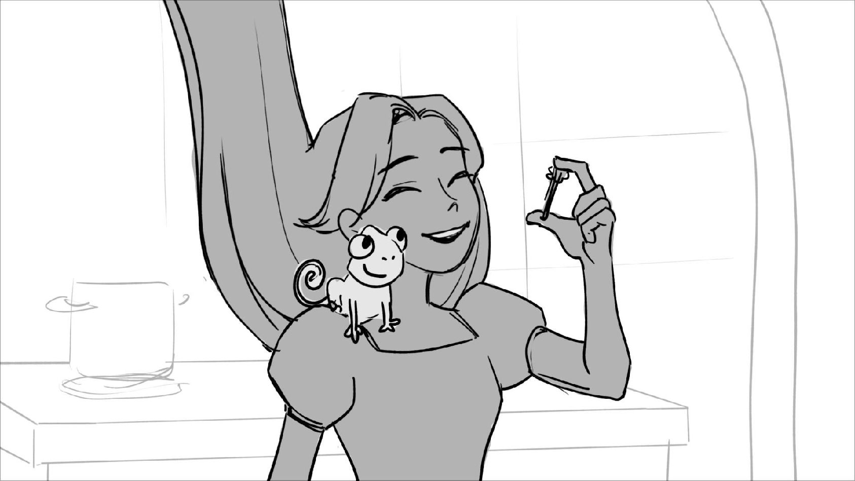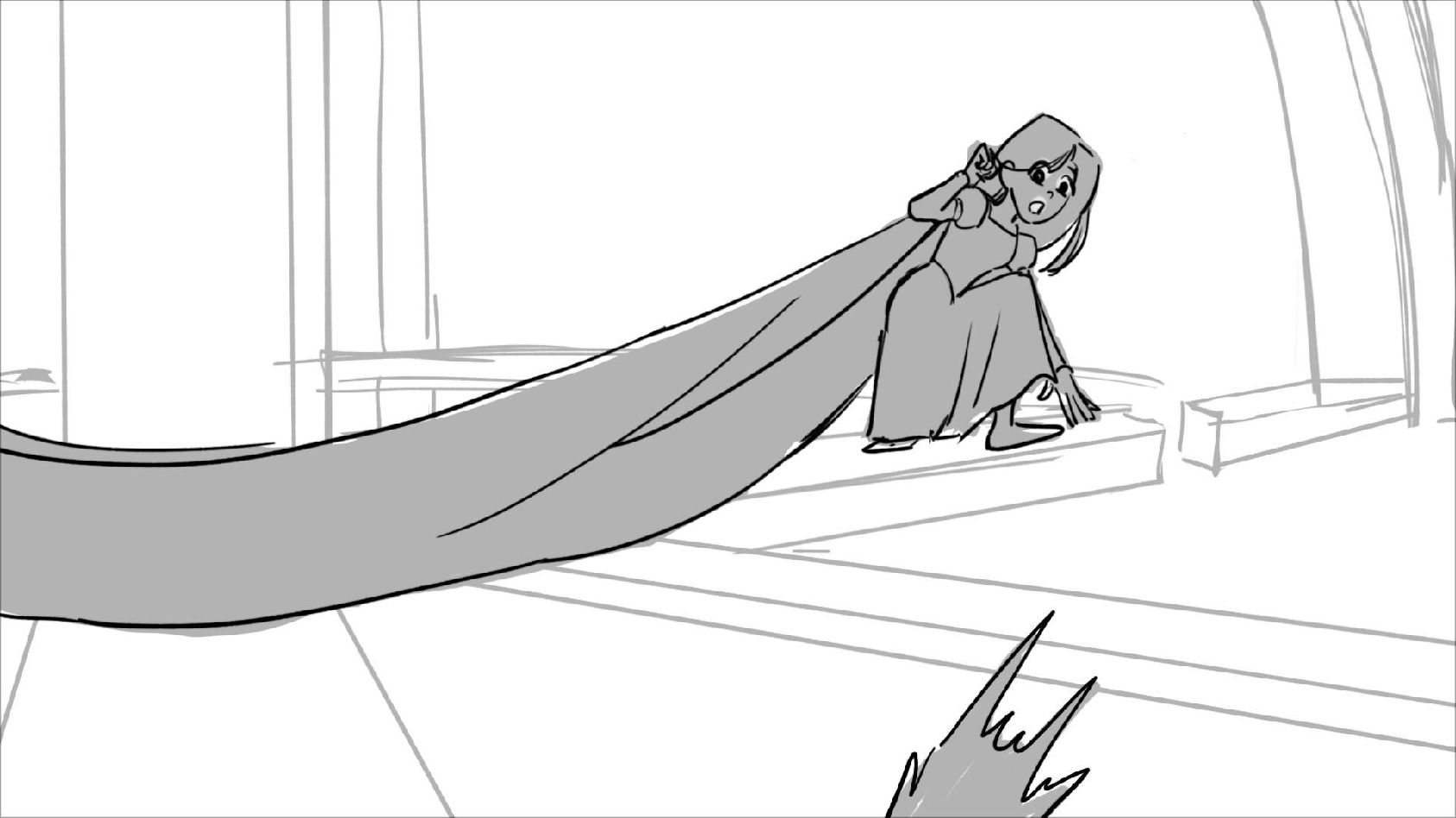 Using character's from "Tangled". A comedy scene of Rapunzel getting ready for a date to meet Eugene.