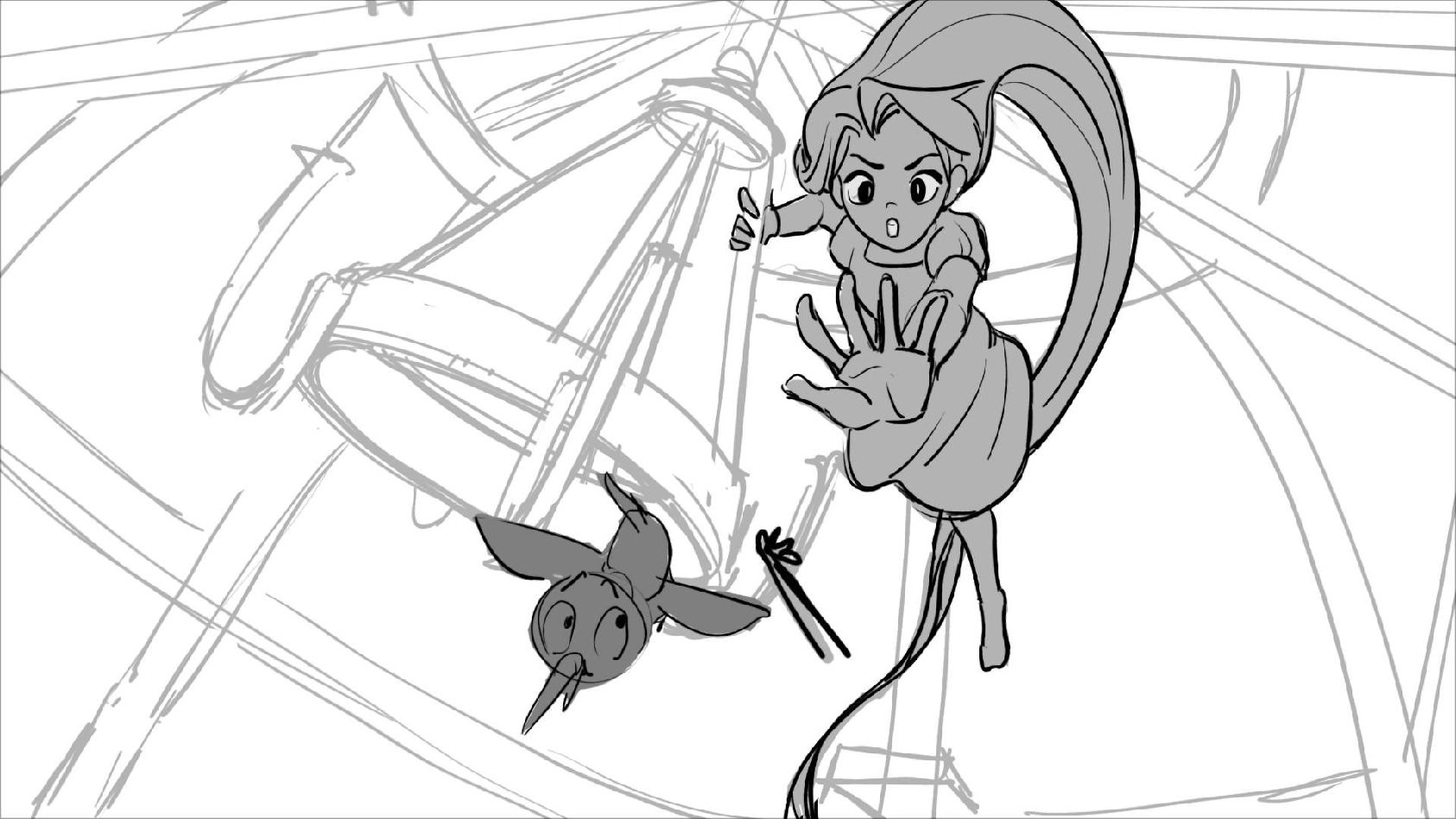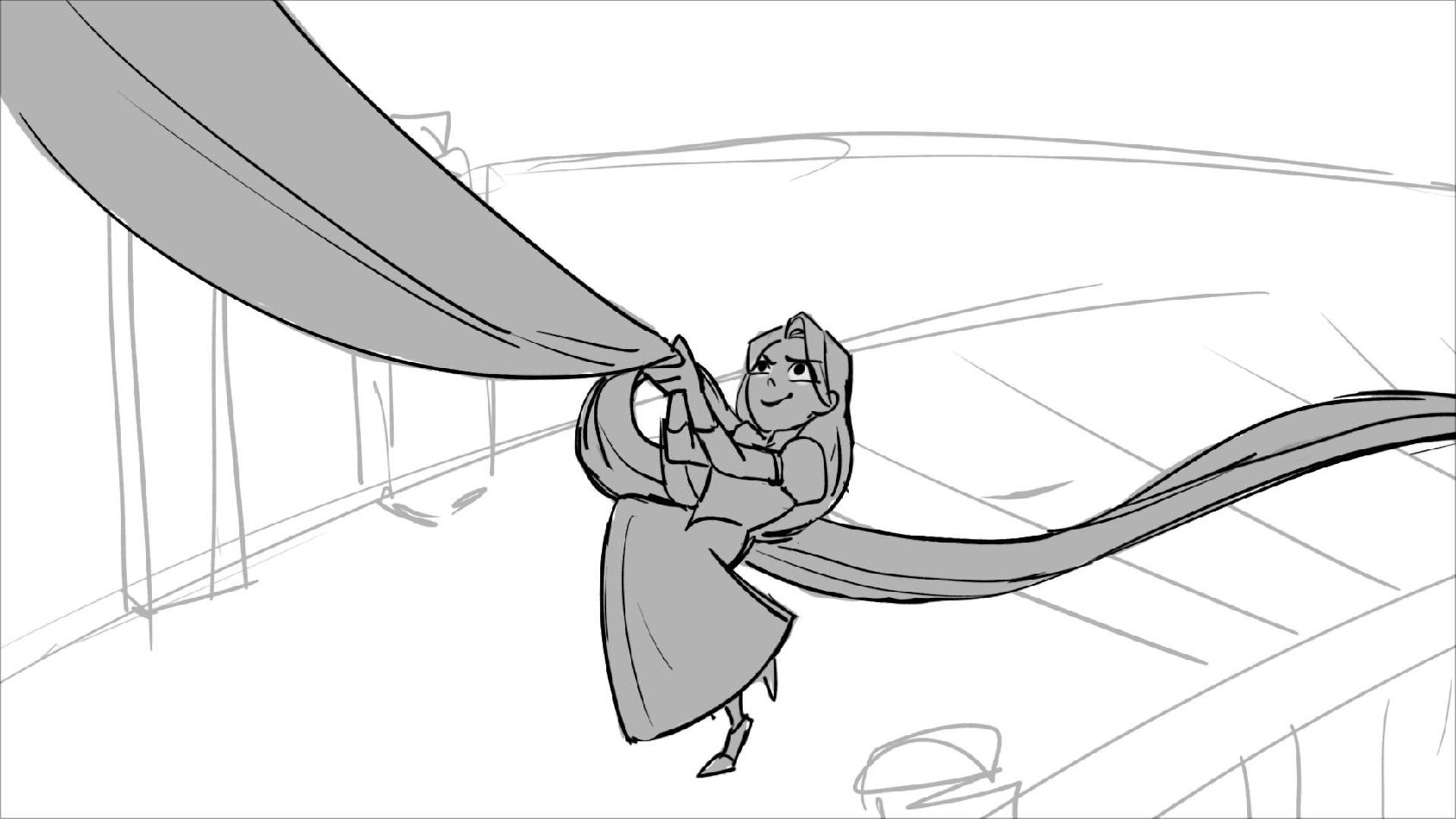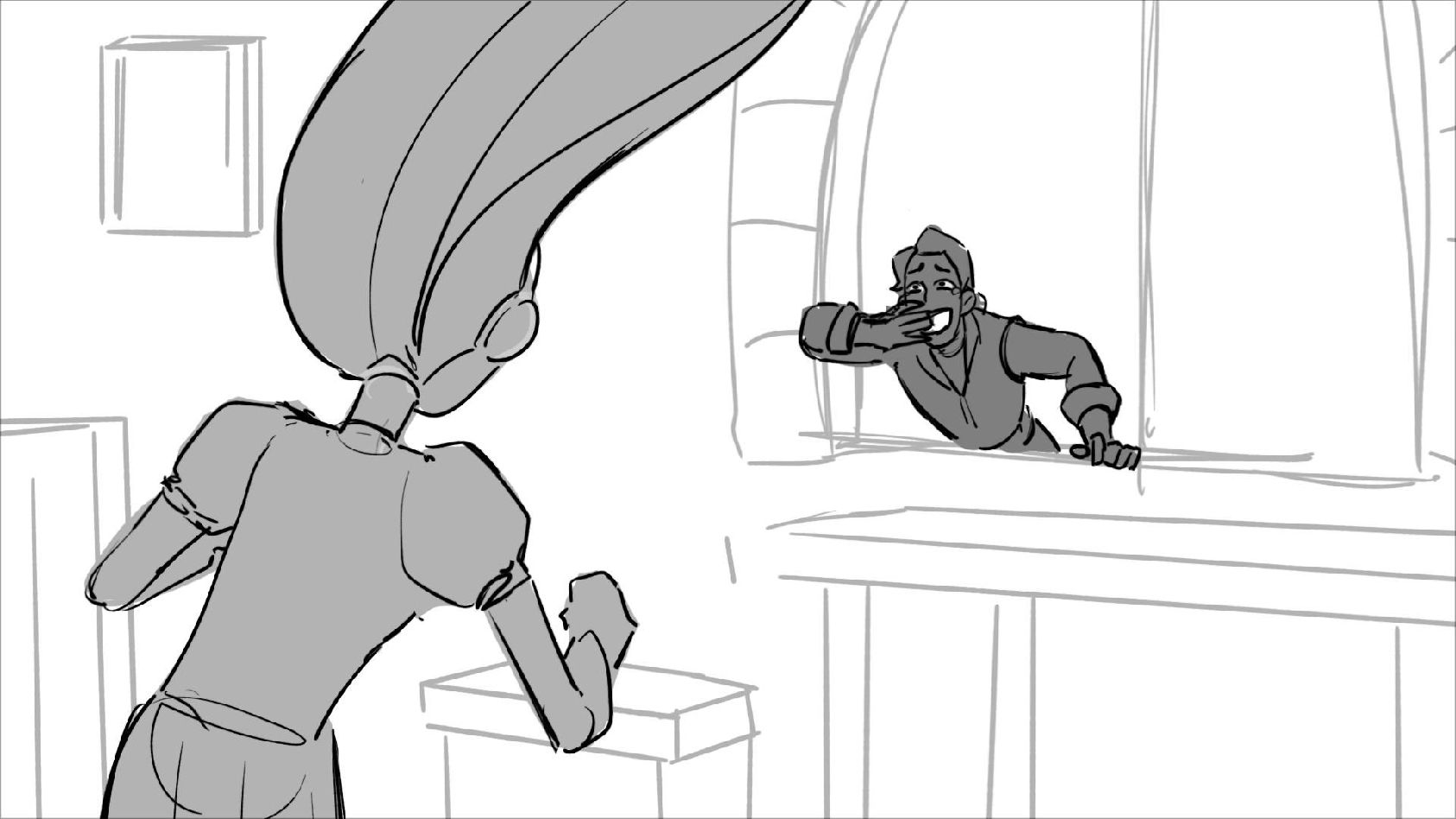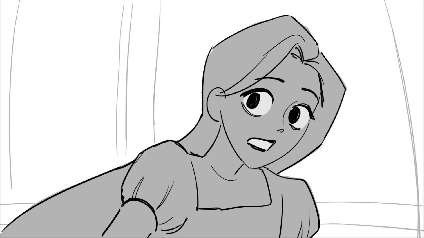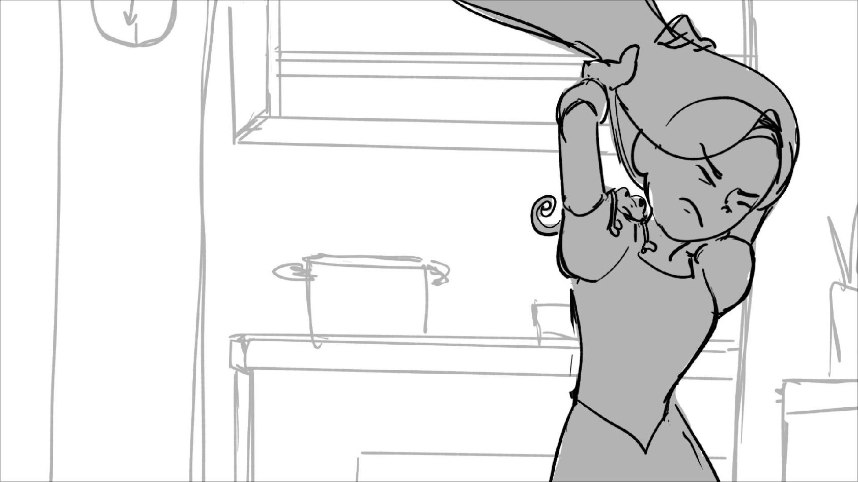 Using character's from "Tangled". A comedy scene of Rapunzel getting ready for a date to meet Eugene.