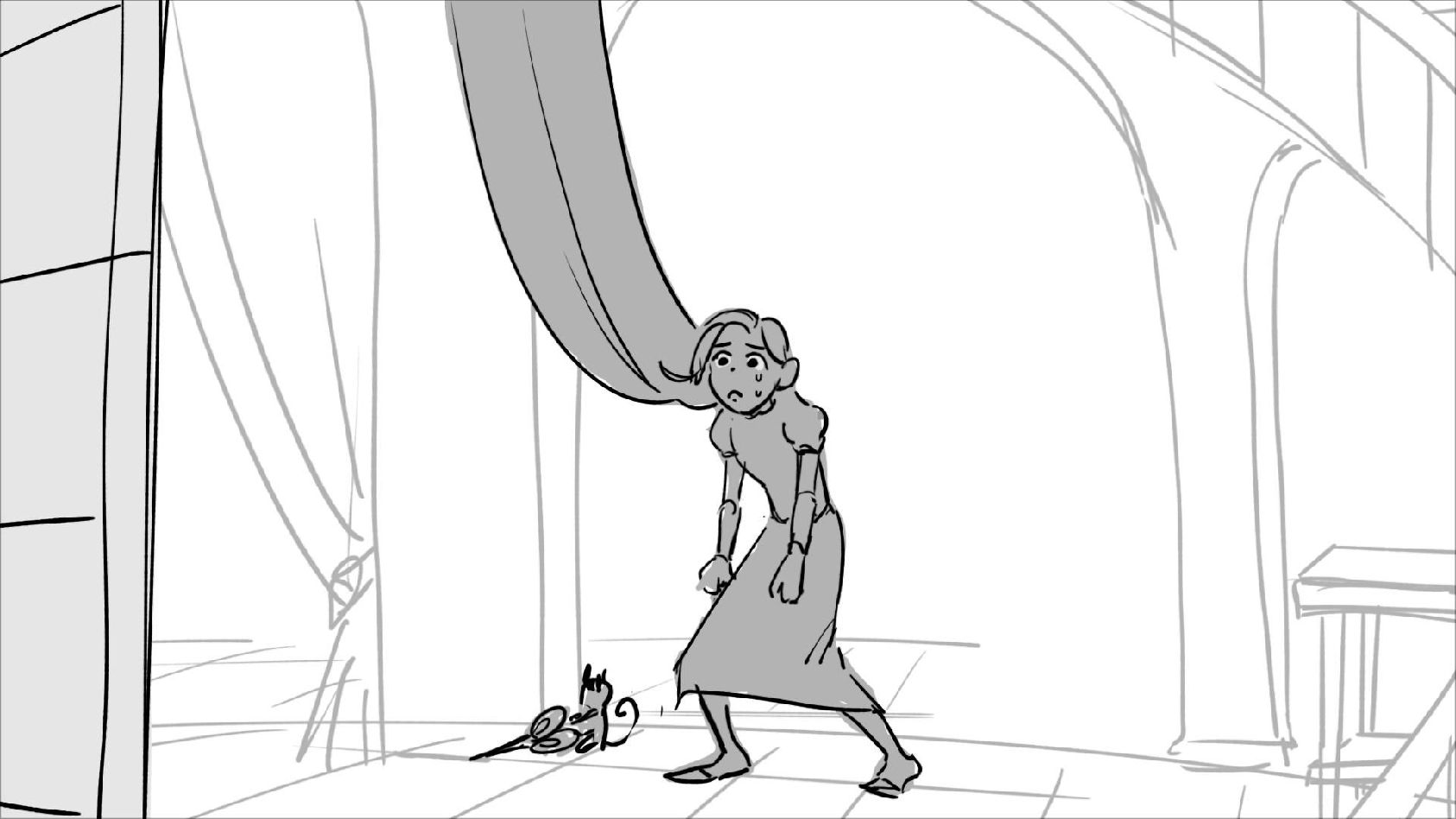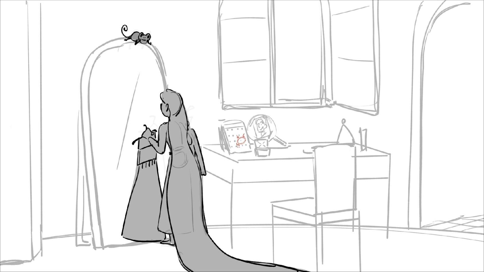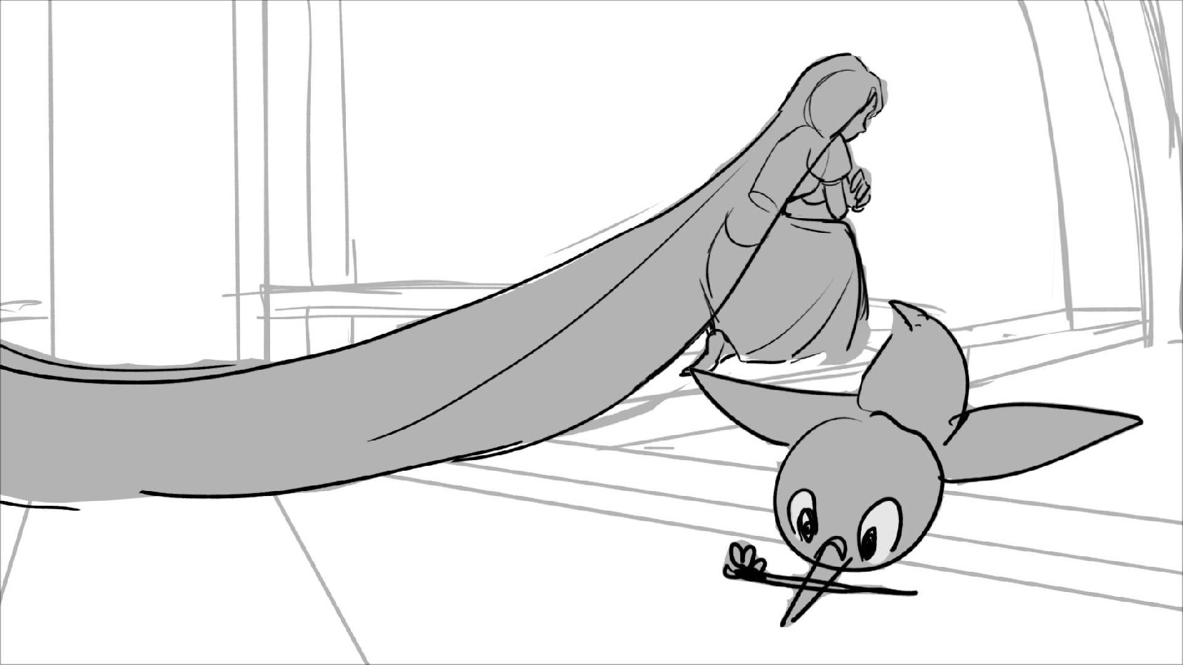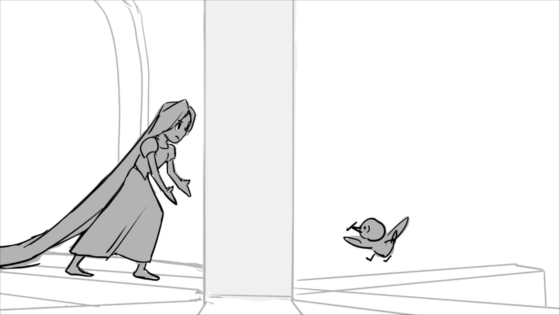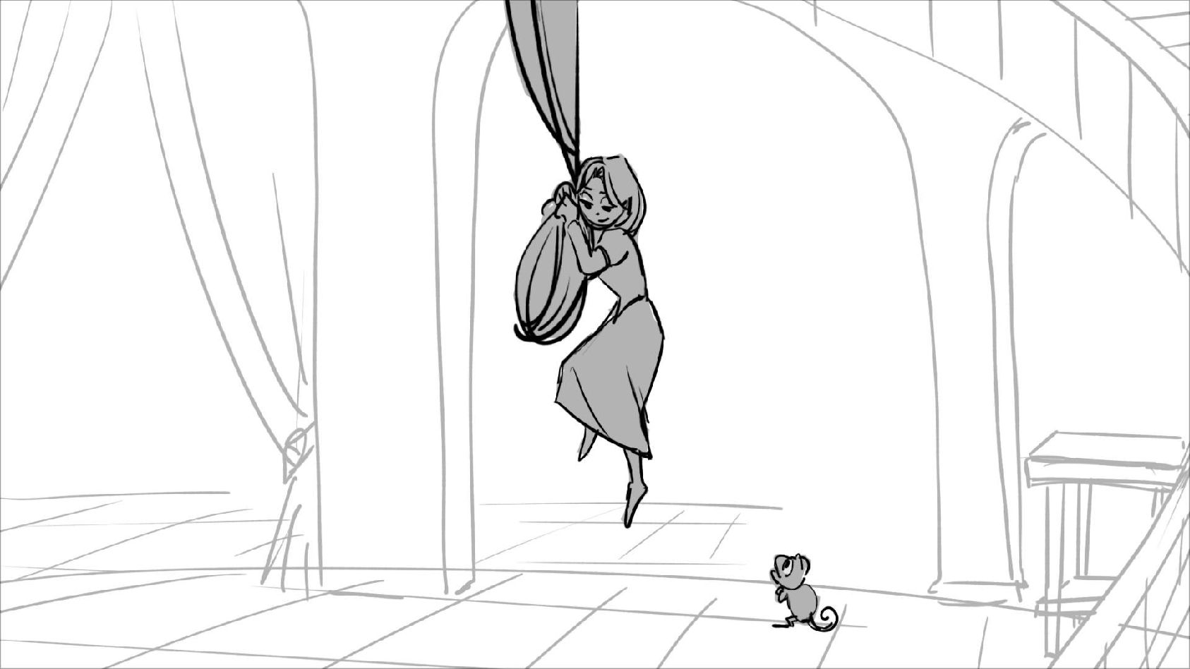 Using character's from "Tangled". A comedy scene of Rapunzel getting ready for a date to meet Eugene.