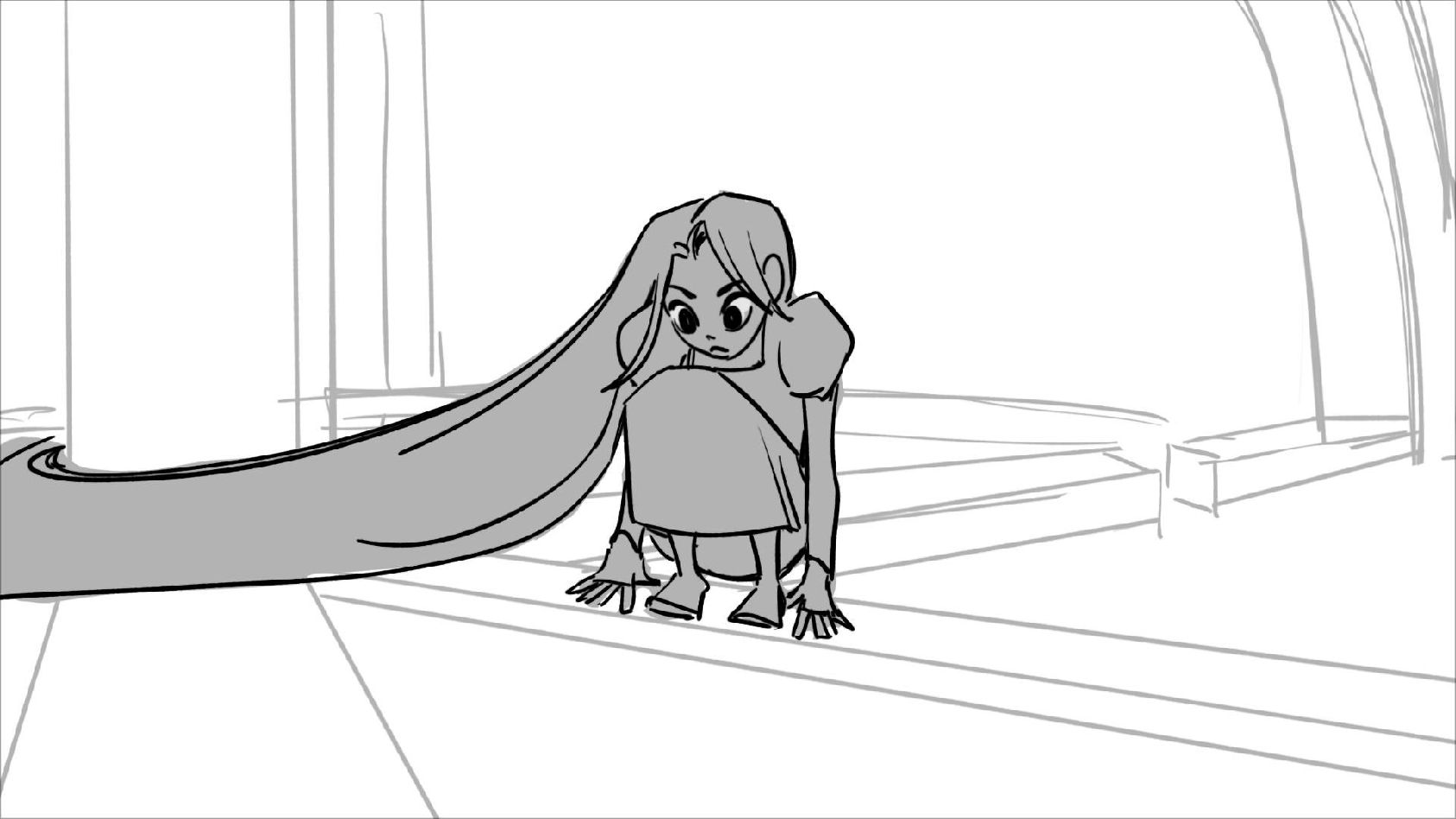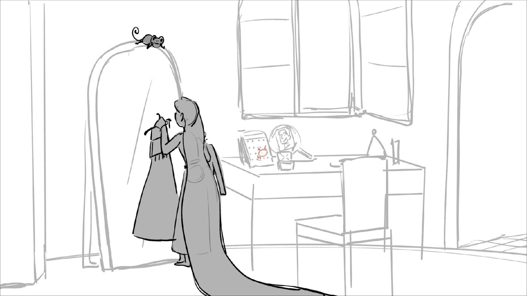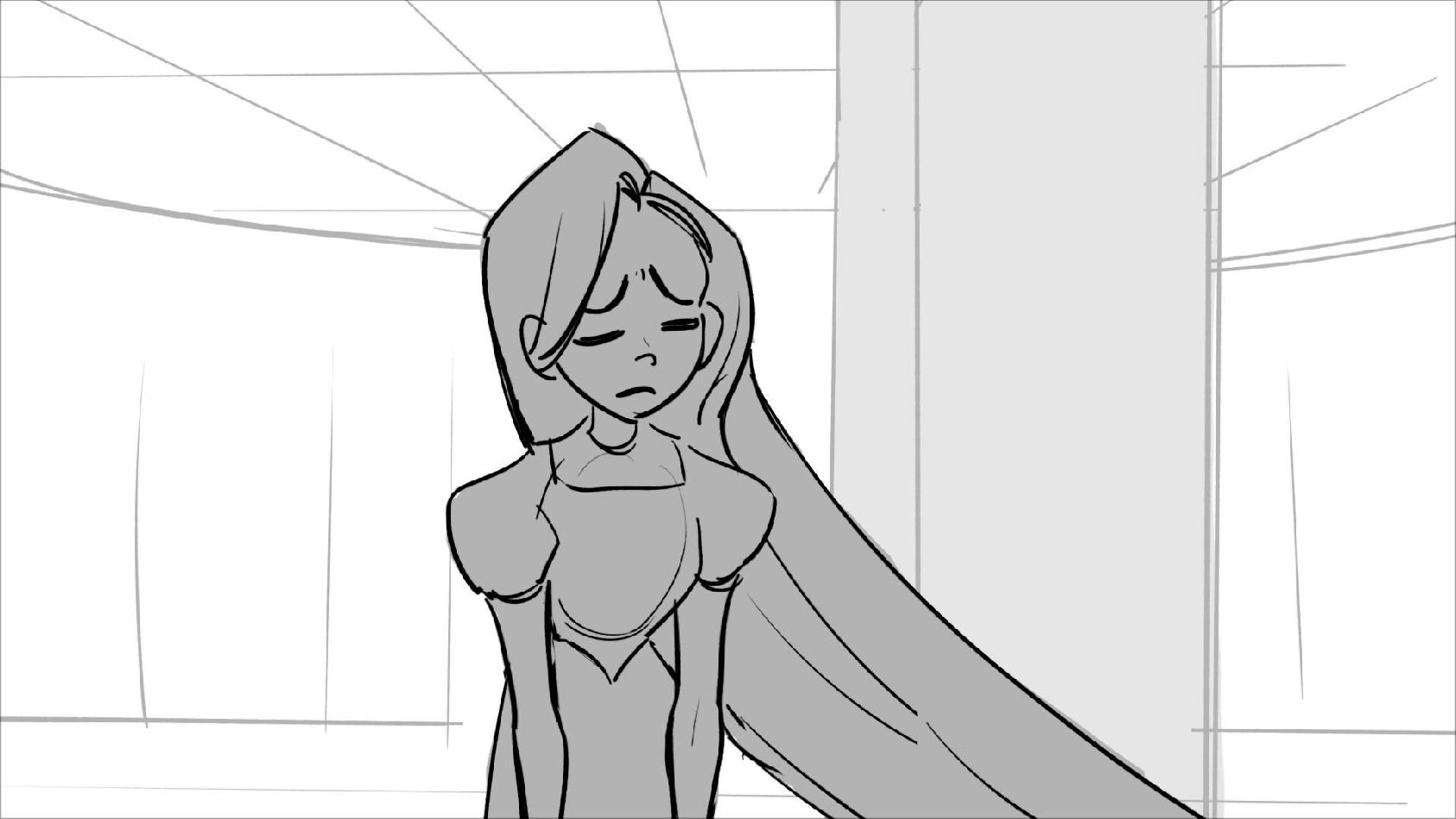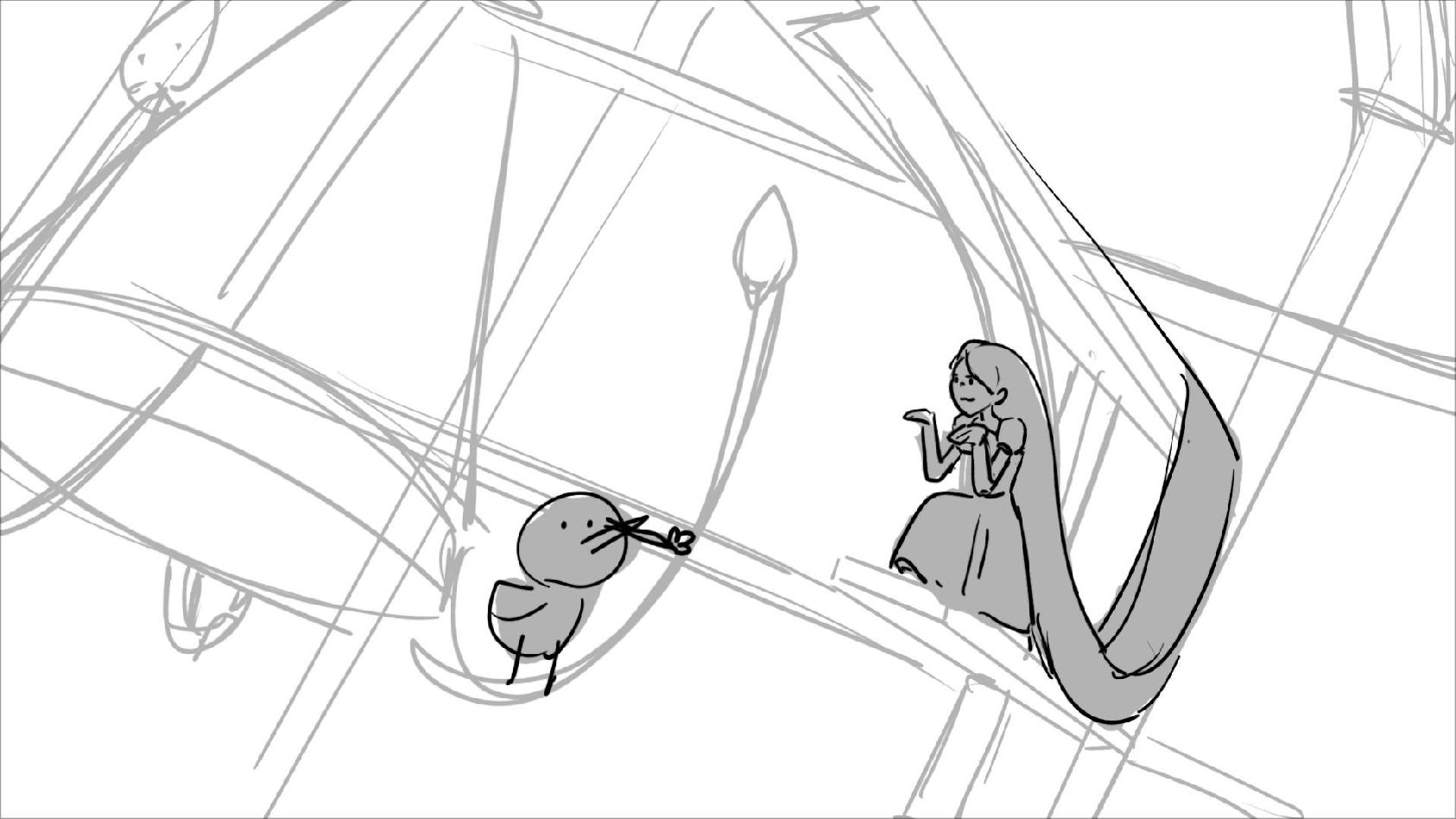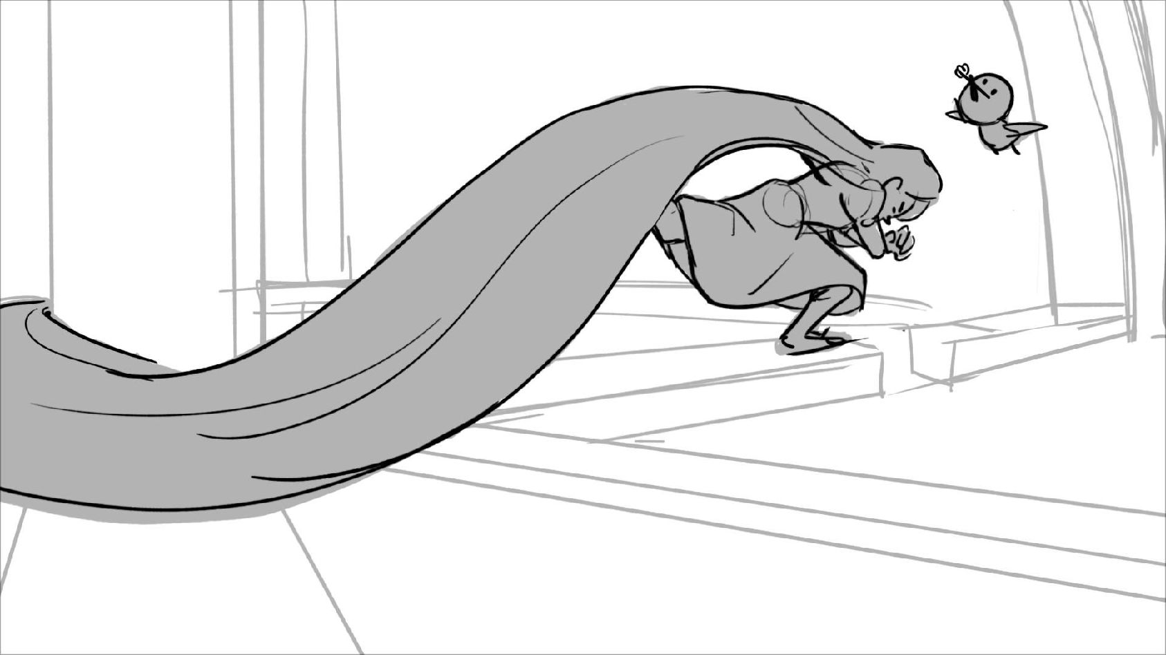Using character's from "Tangled". A comedy scene of Rapunzel getting ready for a date to meet Eugene.