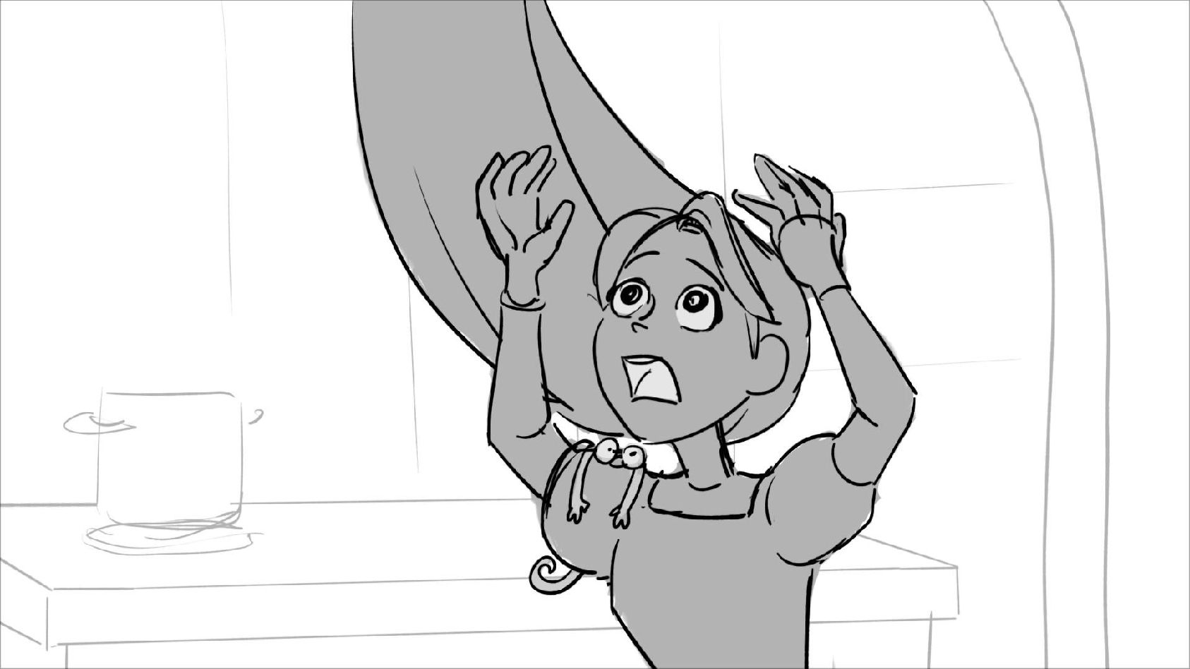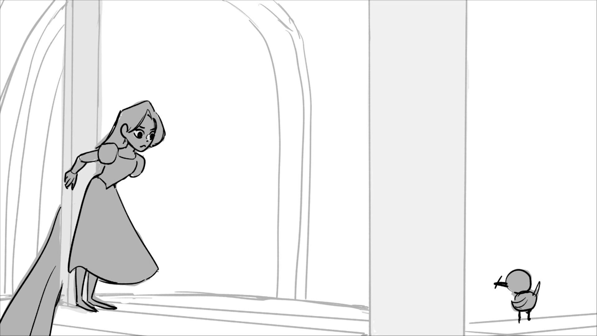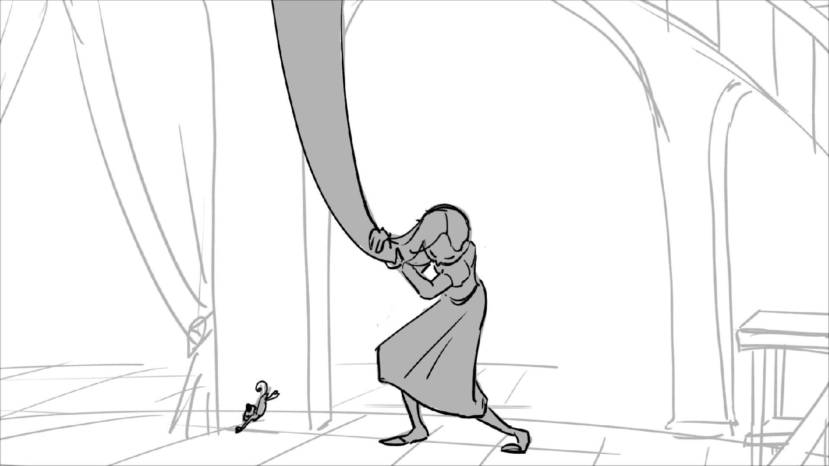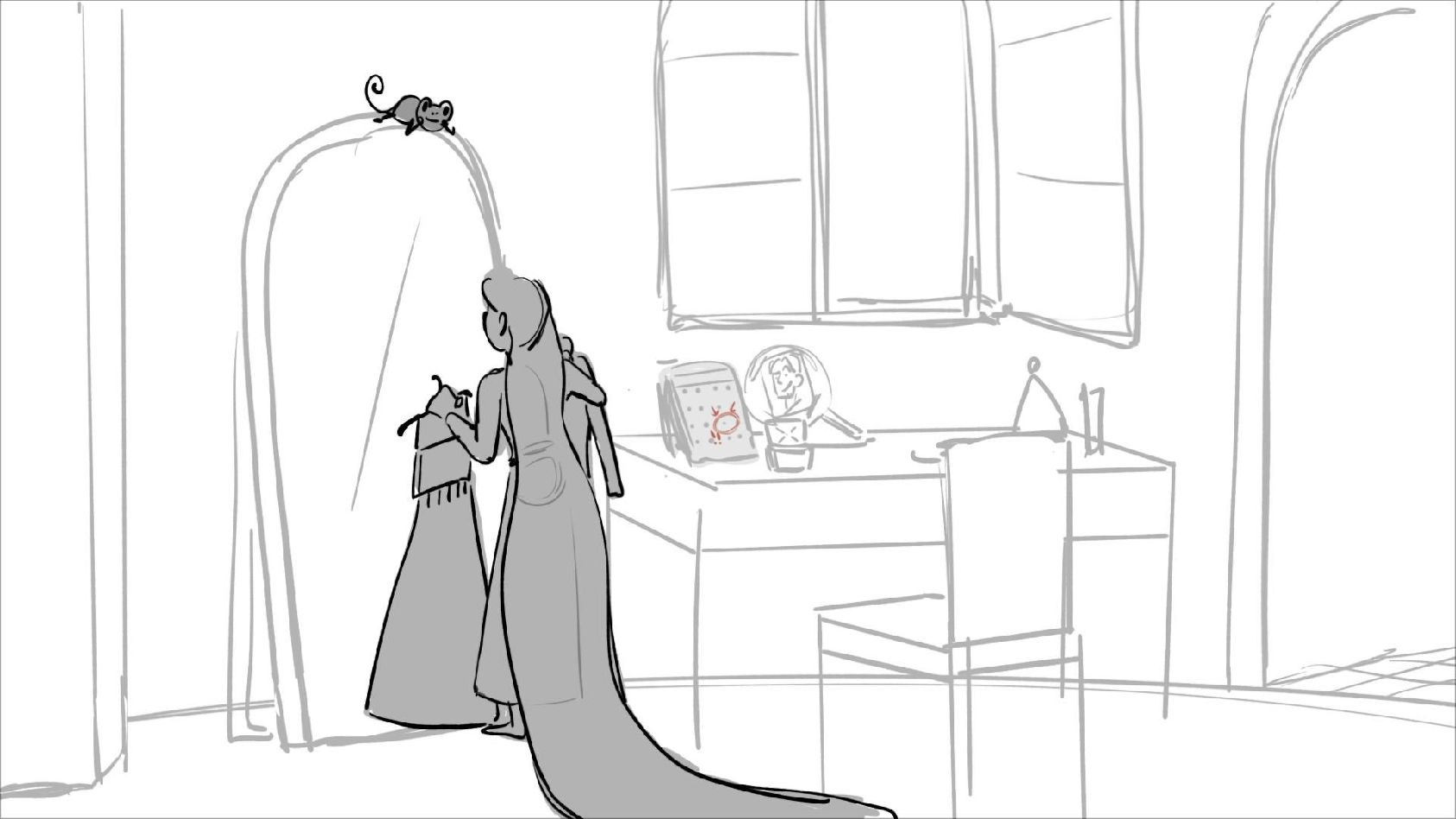 Using character's from "Tangled". A comedy scene of Rapunzel getting ready for a date to meet Eugene.