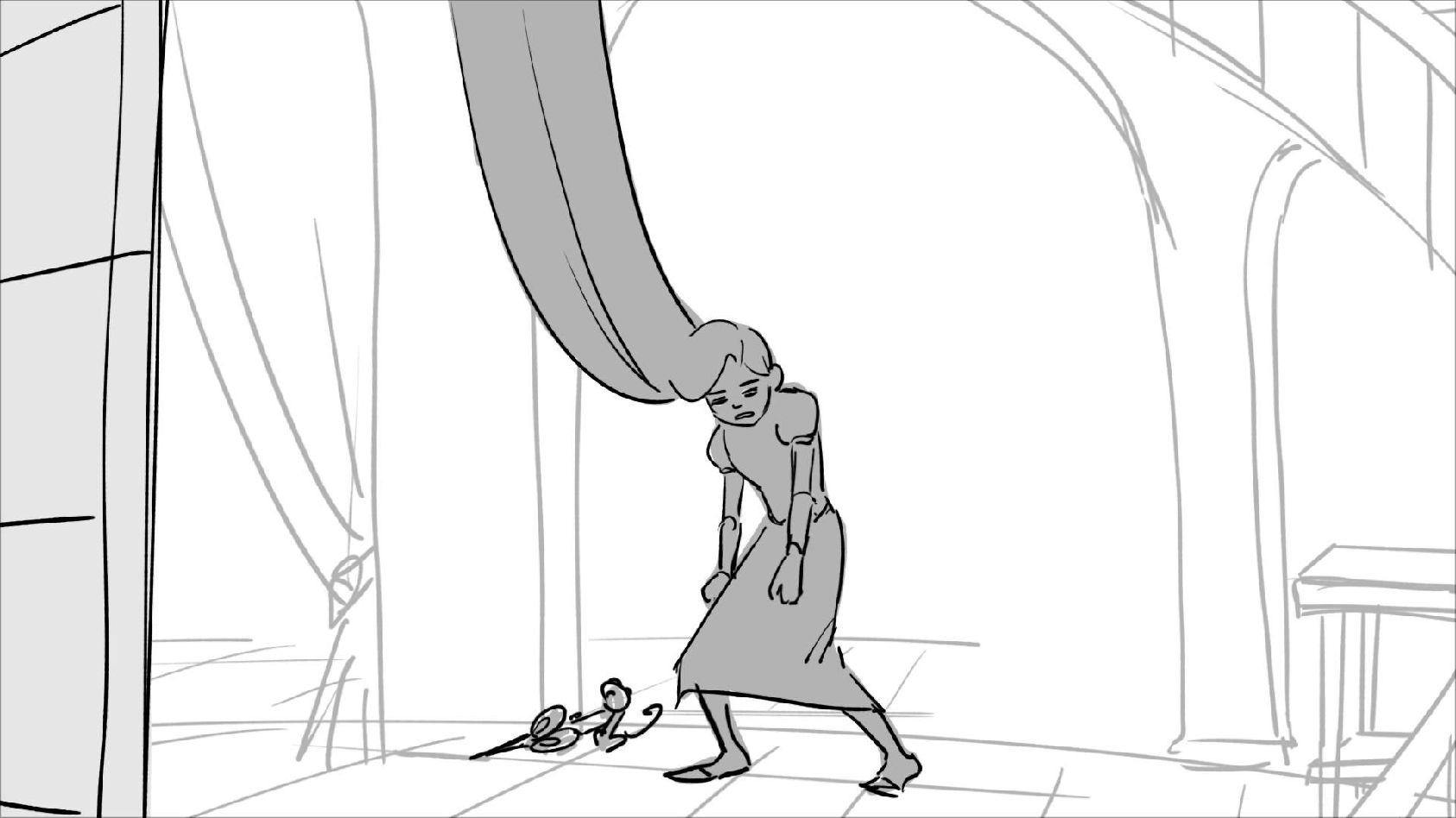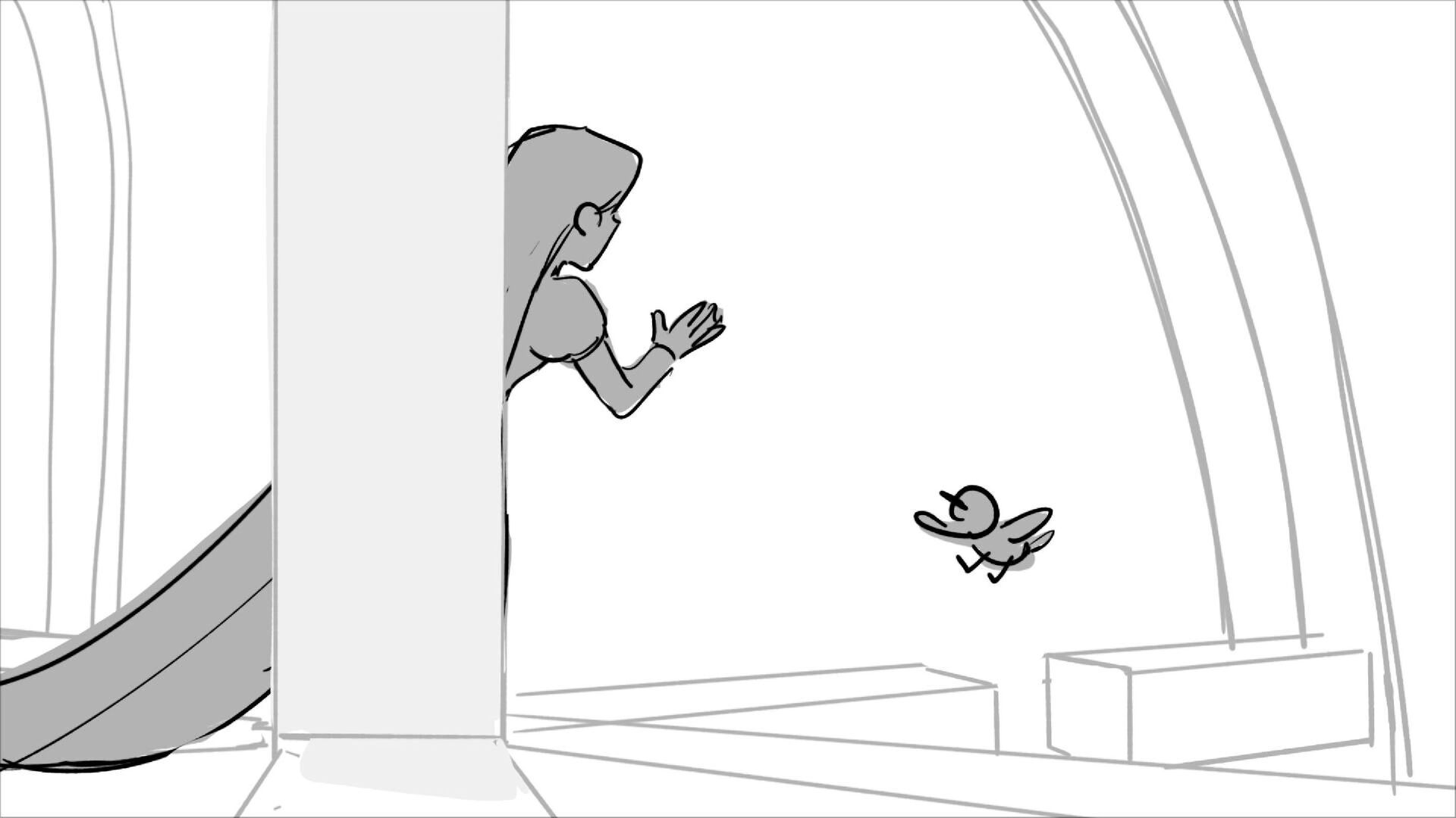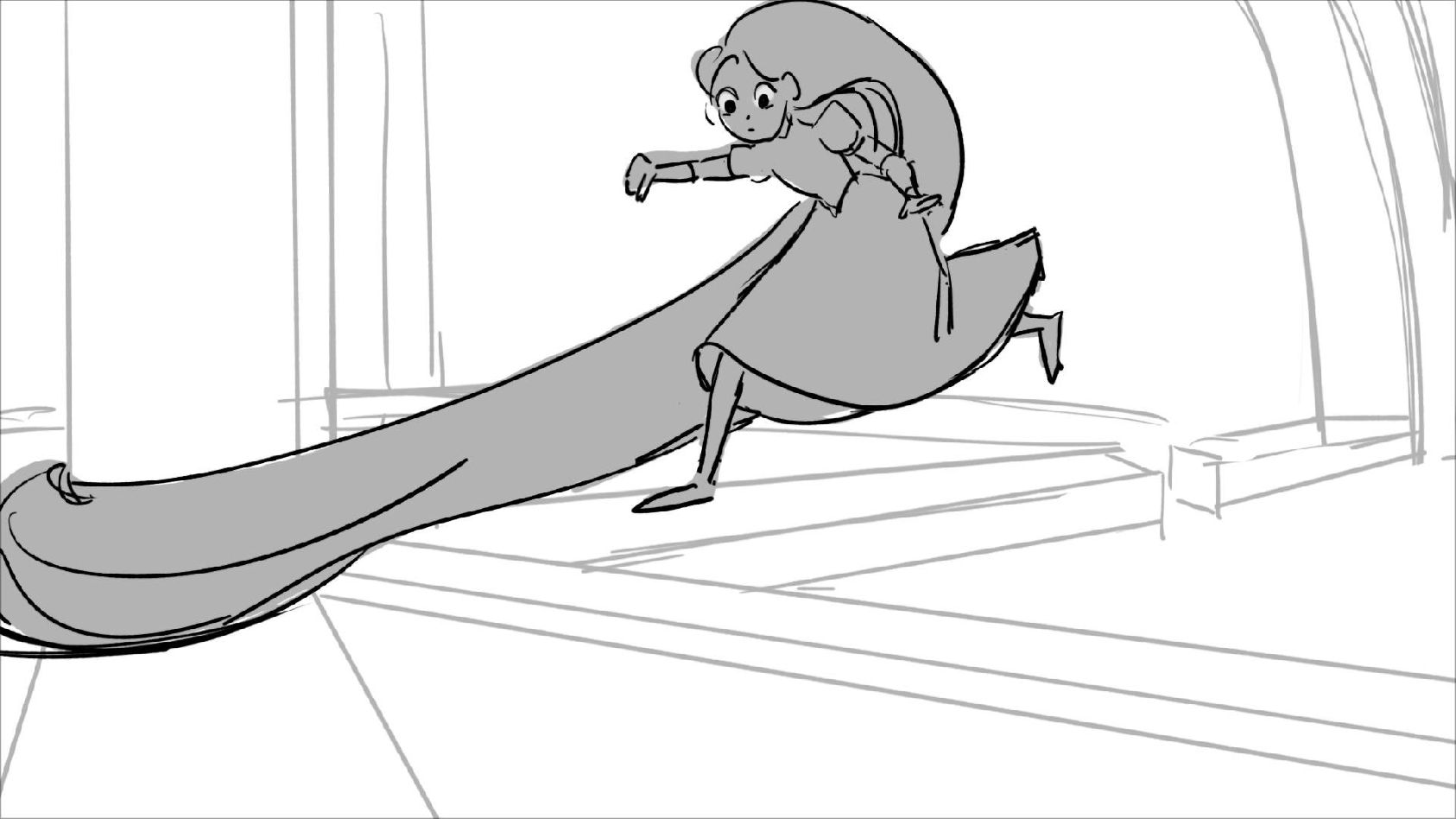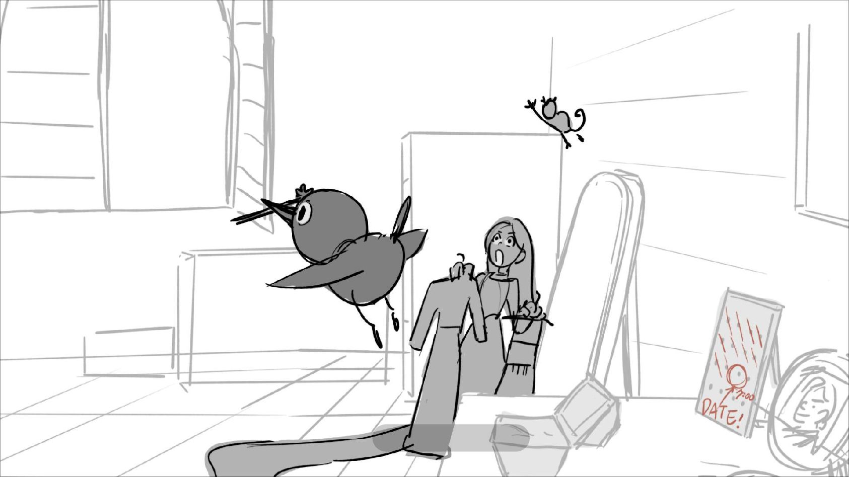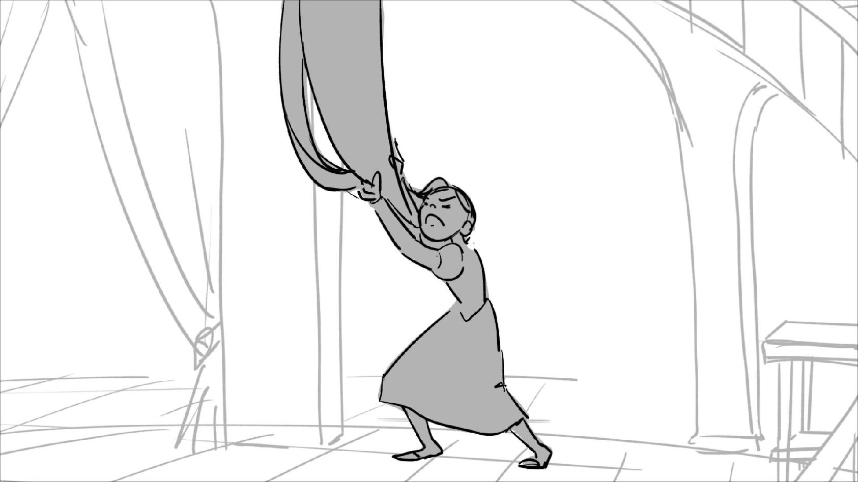 Using character's from "Tangled". A comedy scene of Rapunzel getting ready for a date to meet Eugene.