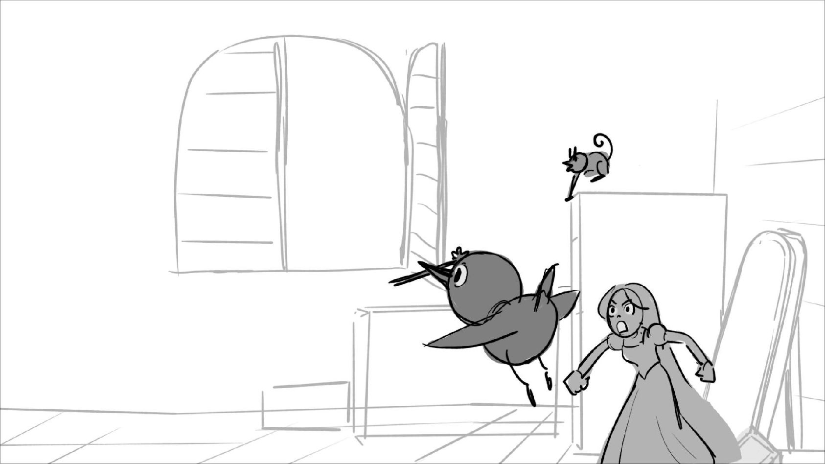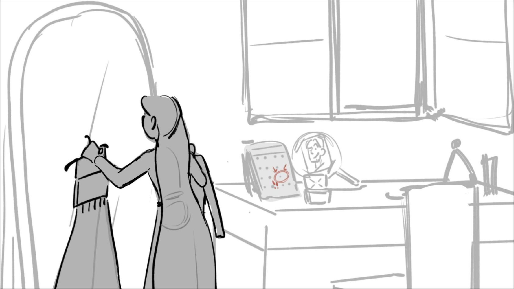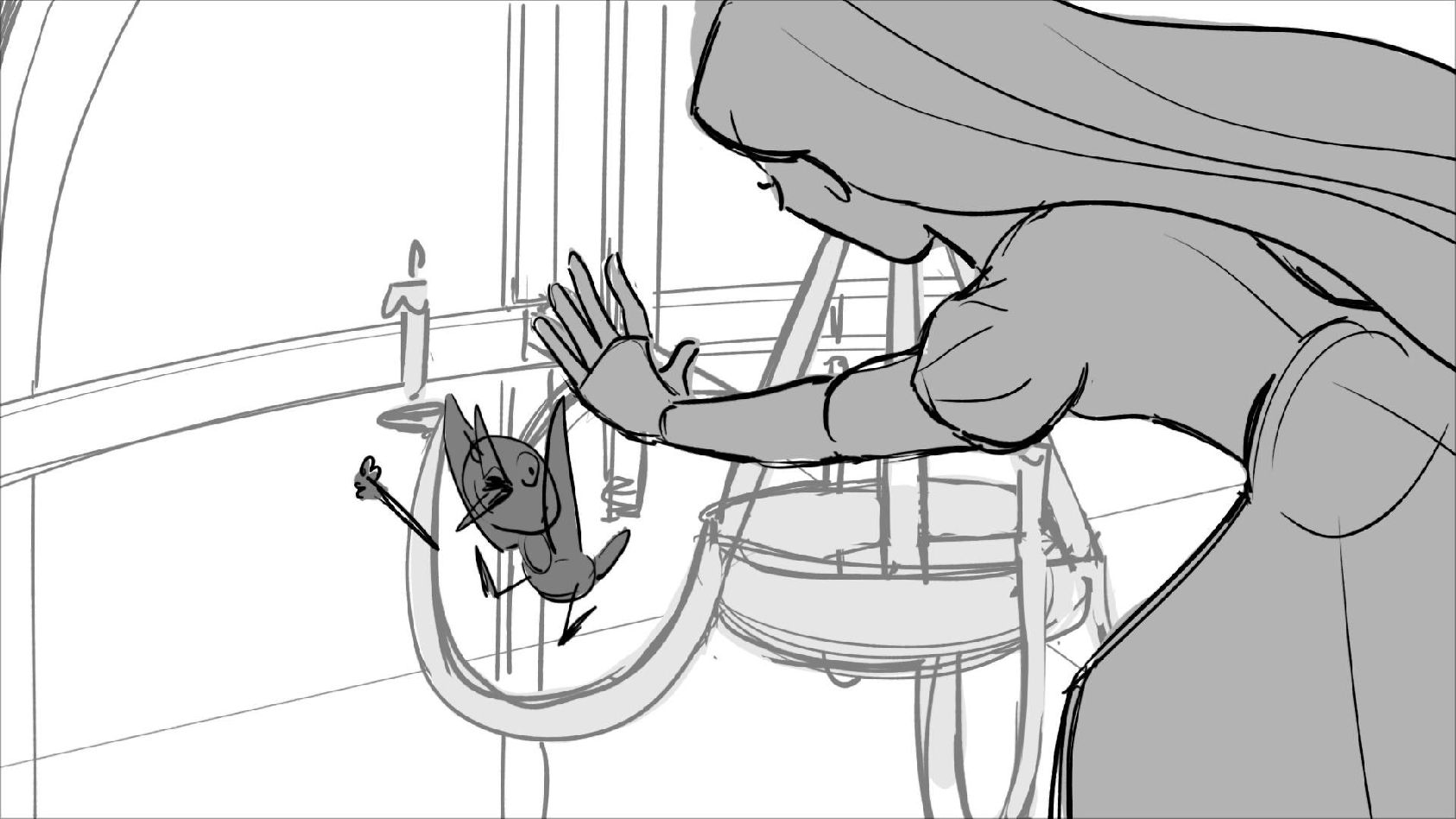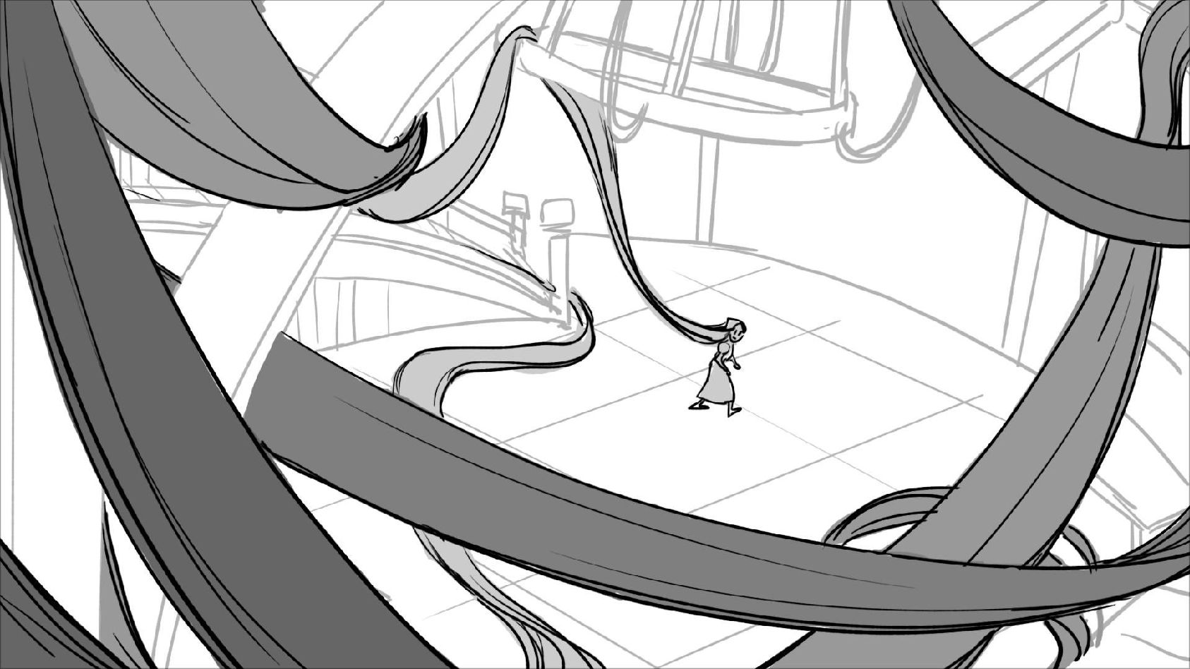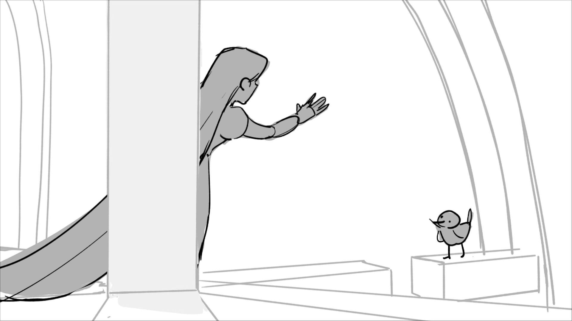 Using character's from "Tangled". A comedy scene of Rapunzel getting ready for a date to meet Eugene.
