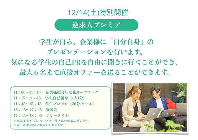 ࠷େ໊̒·ͰΦϑΝʔΛૹΔ͜ͱ͕Ͱ͖·͢ɻ ٯٻਓϓϨϛΞ 12/14()ಛผ։࠵