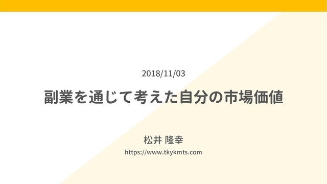 副業を通じて考えた自分の市場価値 松井 隆幸 https://www.tkykmts.com 2018/11/03