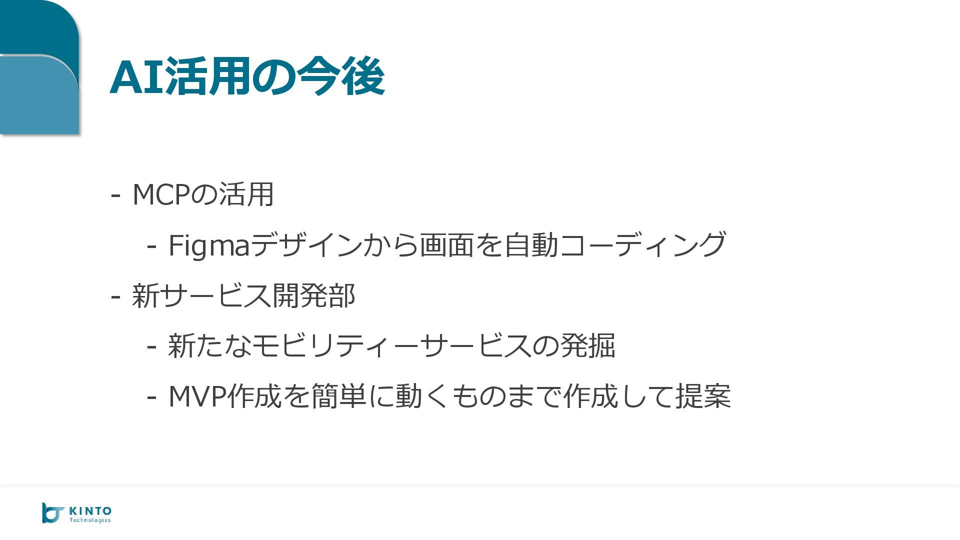 AI活用の今後 - MCPの活用 - Figmaデザインから画面を自動コーディング - 新サービス開発部 - 新たなモビリティーサービスの発掘 -