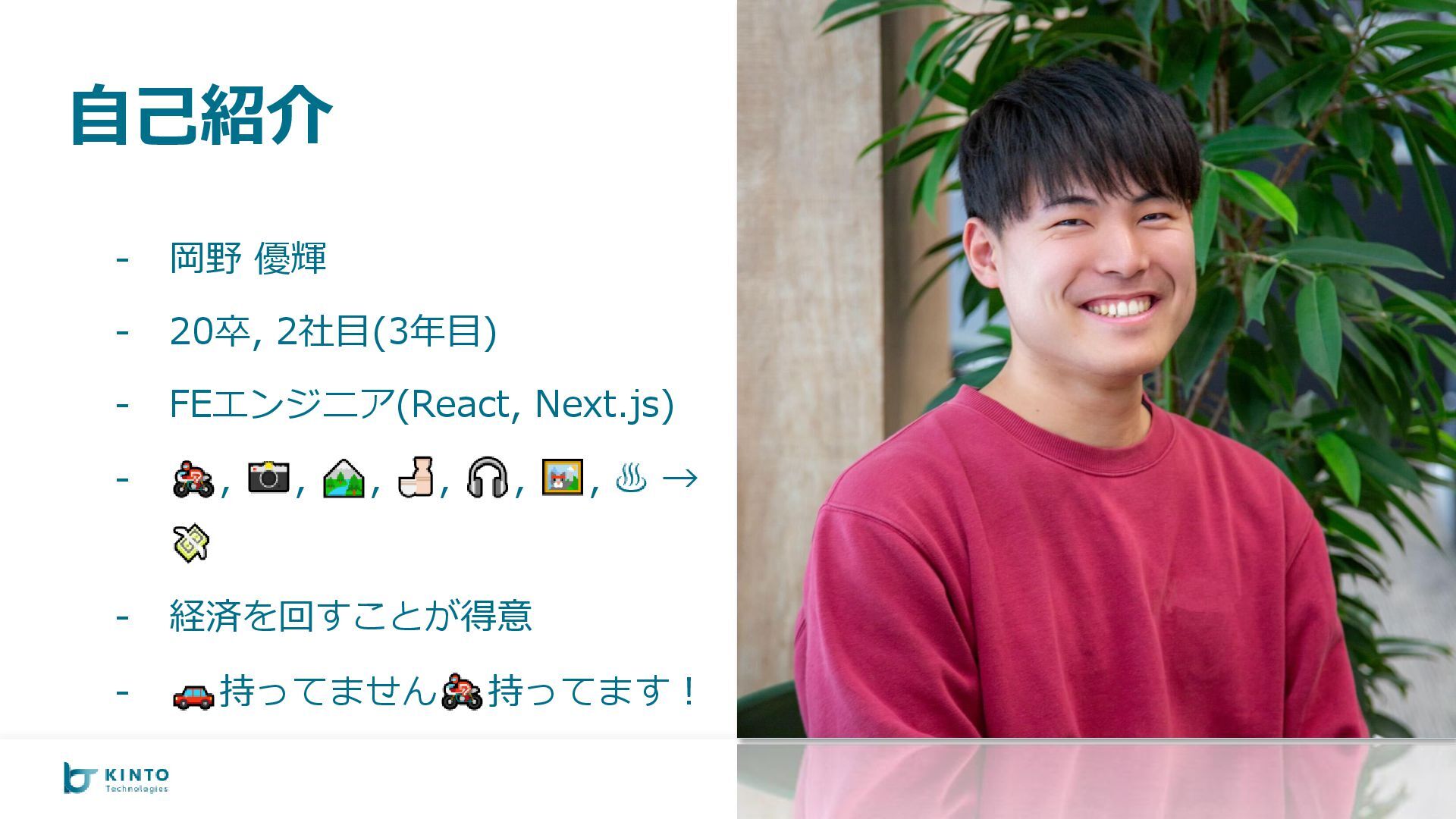 自己紹介 - 岡野 優輝 - 20卒, 2社目(3年目) - FEエンジニア(React, Next.js)