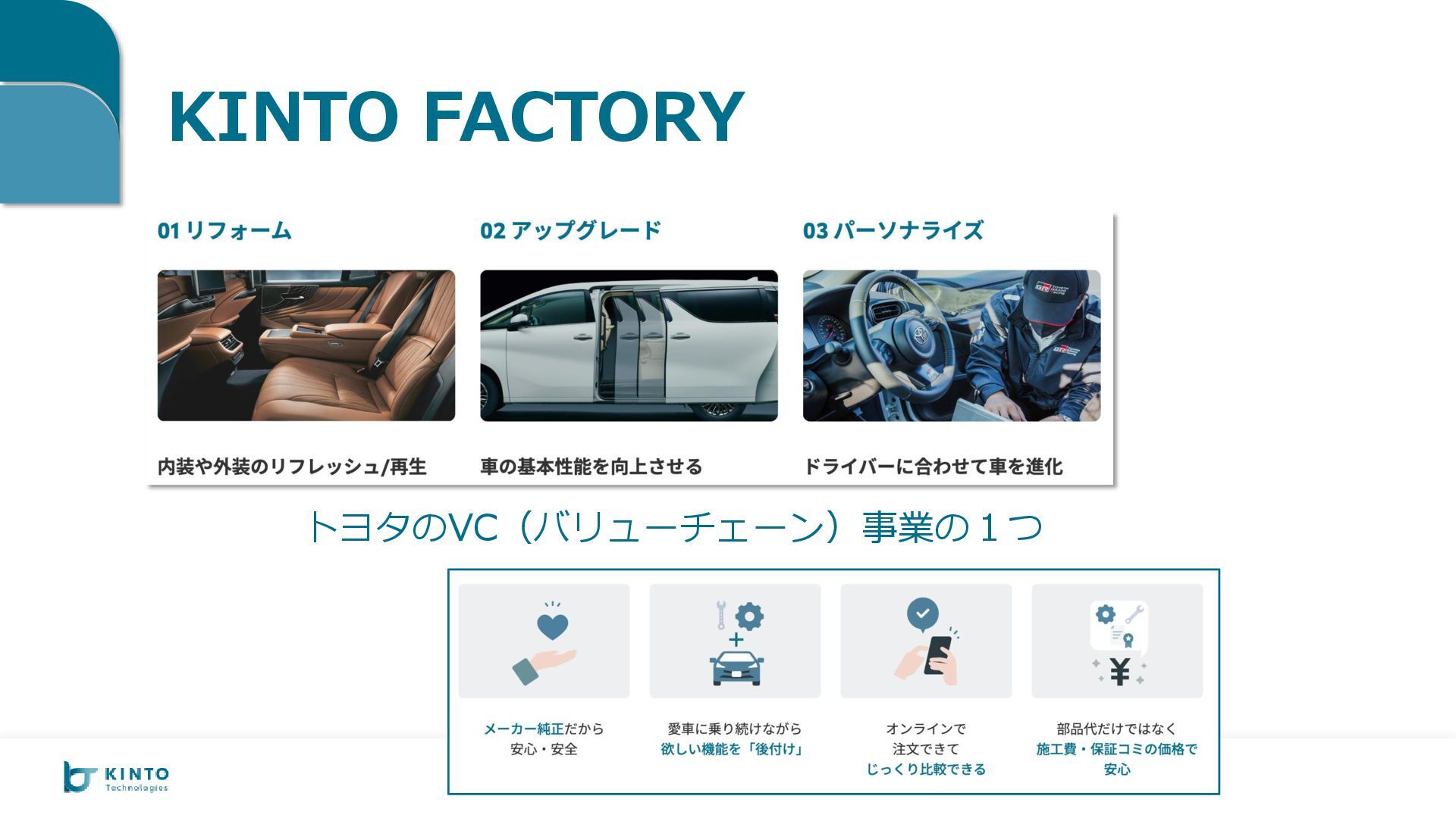 トヨタのVC(バリューチェーン)事業の1つ KINTO FACTORY