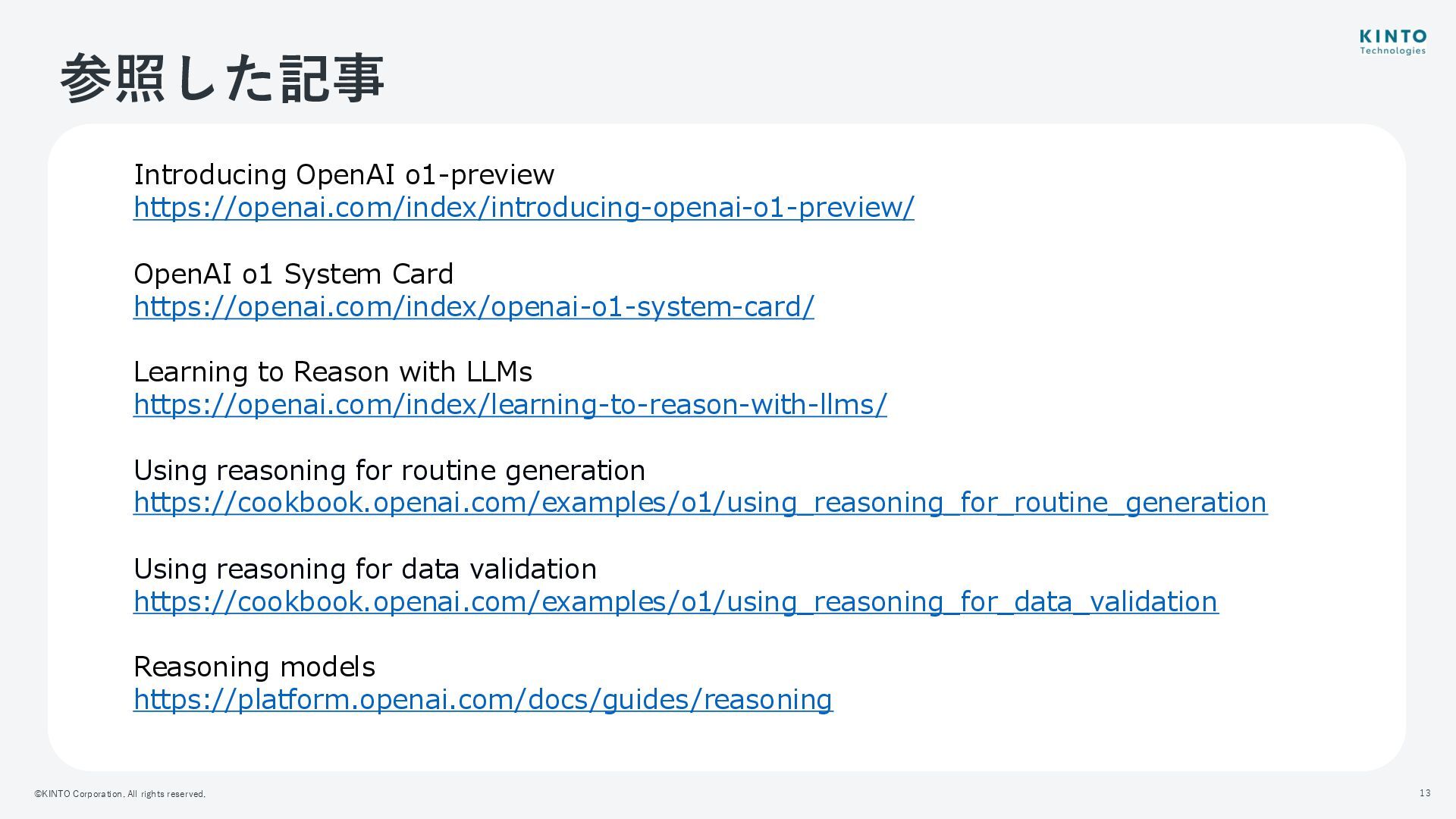 https://openai.com/index/introducing-openai-o1-preview/ OpenAI o1 System Card https://openai.com/index/openai-o1-system-card/ Learning to Reason with LLMs https://openai.com/index/learning-to-reason-with-llms/ Using reasoning for routine generation https://cookbook.openai.com/examples/o1/using_reasoning_for_routine_generation Using reasoning for data validation https://cookbook.openai.com/examples/o1/using_reasoning_for_data_validation Reasoning models https://platform.openai.com/docs/guides/reasoning