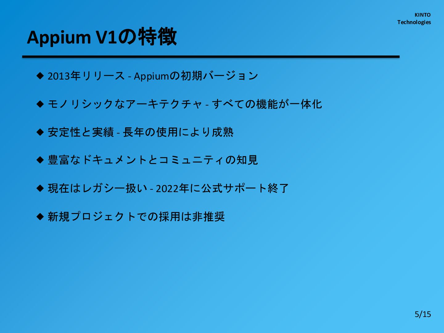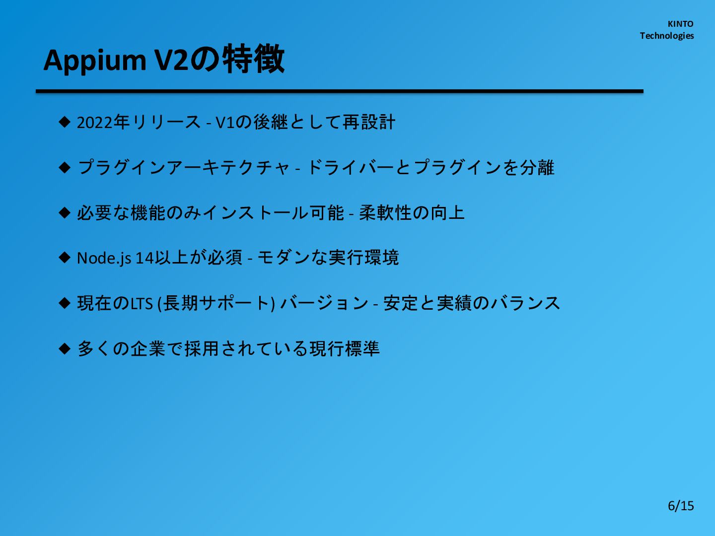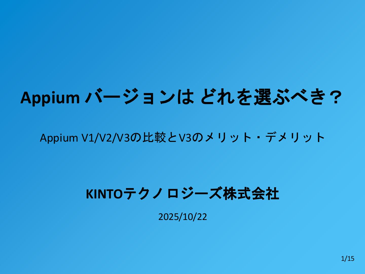 Appium バージョンは どれを選ぶべき? Appium V1/V2/V3の比較とV3のメリット・デメリット KINTOテクノロジーズ株式会社 2025/10/22 1/15