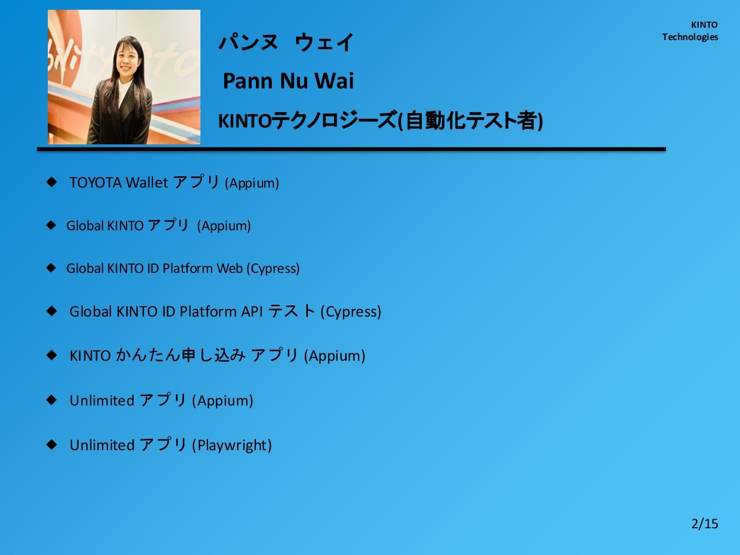 KINTO Technologies パンヌ ウェイ Pann Nu Wai KINTOテクノロジーズ(自動化テスト者) ◆ TOYOTA