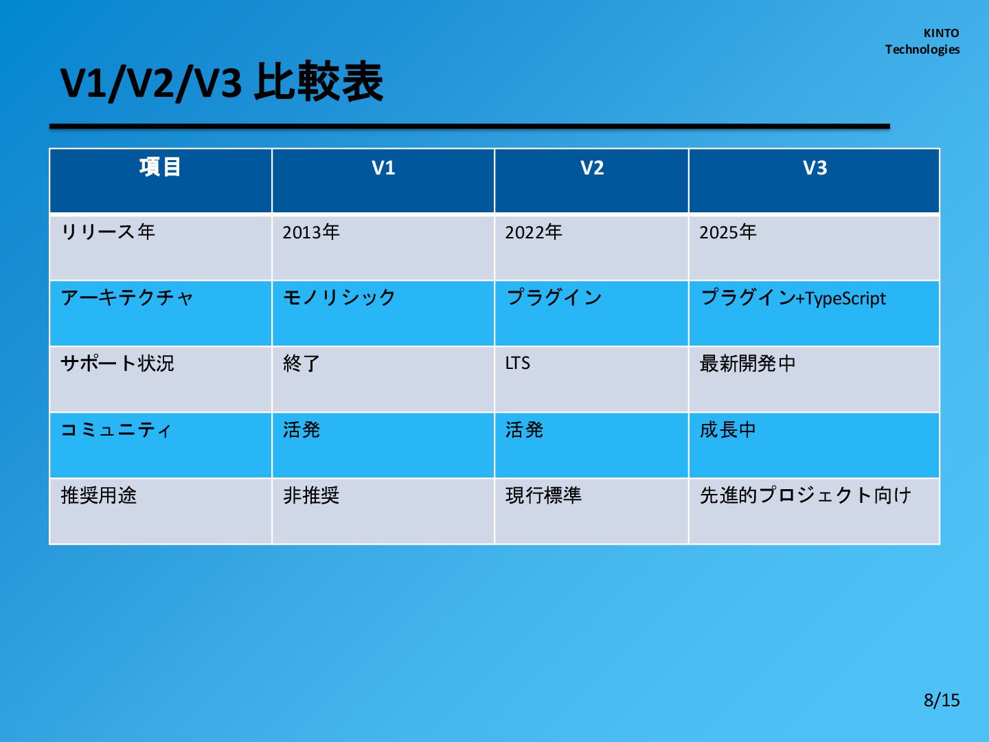 KINTO Technologies V1/V2/V3 比較表 項目 V1 V2 V3 リリース年 2013年