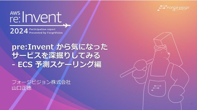 ・ マネージメントコンソールから予測結果に基づく推奨事項も確認できる。 ・ 業務アプリケーションや開発環境など利用される時間がパターン化している環境。 EventBridgeを用いてスケジュール型のスケーリングは可能だが、タスク数などの調整も予測スケーリングに 任せることができる。 ・ メッセージキューイングと連携したイベント駆動型ワークロードにおいて、メッセージ数ではスケーリングを 制御できない場合、予測スケーリングで使ってベースラインを設定する。 ・ 予測スケーリング、既存スケーリングはそれぞれ独立して必要タスク数を計算するため、既存スケーリング ポリシーが現在のタスクよりも少ないタスク数を算出した場合でも、ECSはスケールインを行わない。 予測スケーリング、既存スケーリングの両方が現在のタスクよりも少ないタスク数を算出場合に スケールイン処理を行う。 予測スケーリングが適している環境か事前の確認が必要 予期せぬスケールインへの保険とする 予測スケーリングが適している環境を認識して適用対象を選択する