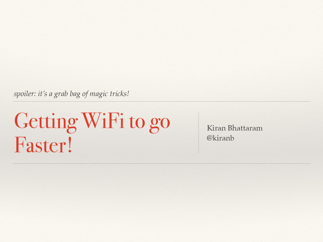 Learn how adding more antennas lets you squeeze more information out of the air! (Note: this is actually the coolest!) Along the way, we'll discuss what the silly numbers and letters on your router mean, and the fantastic bag of signal processing and programming tricks that lets you carry the internet around in your pocket!