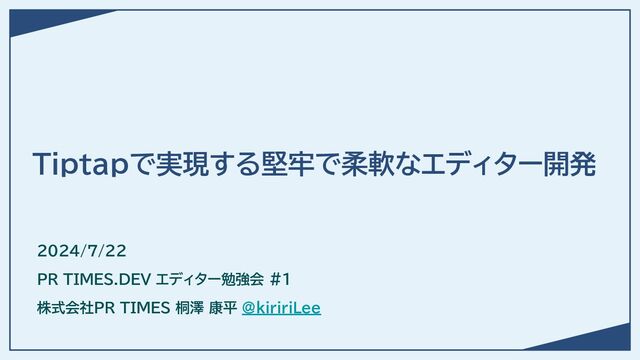 Tiptapで実現する堅牢で柔軟なエディター開発 2024/7/22 PR TIMES.DEV エディター勉強会 #1 株式会社PR TIMES 桐澤 康平