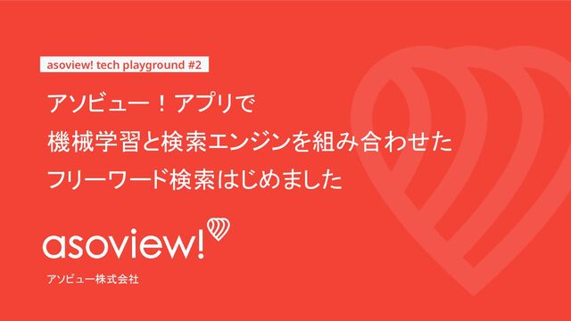 アソビュー株式会社 アソビュー!アプリで 機械学習と検索エンジンを組み合わせた フリーワード検索はじめました asoview! tech playground #2
