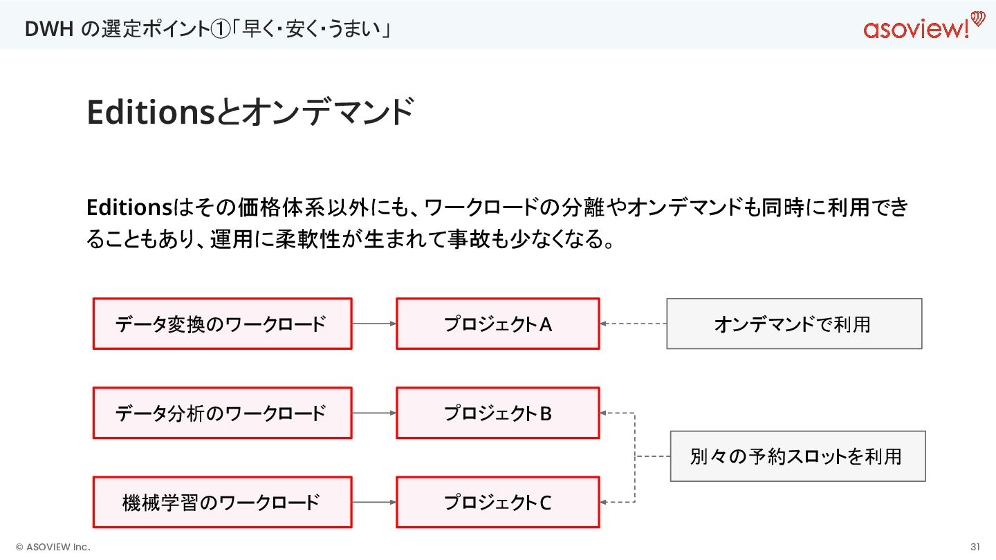 Editionsはその価格体系以外にも、ワークロードの分離やオンデマンドも同時に利用でき ることもあり、運用に柔軟性が生まれて事故も少なくなる。