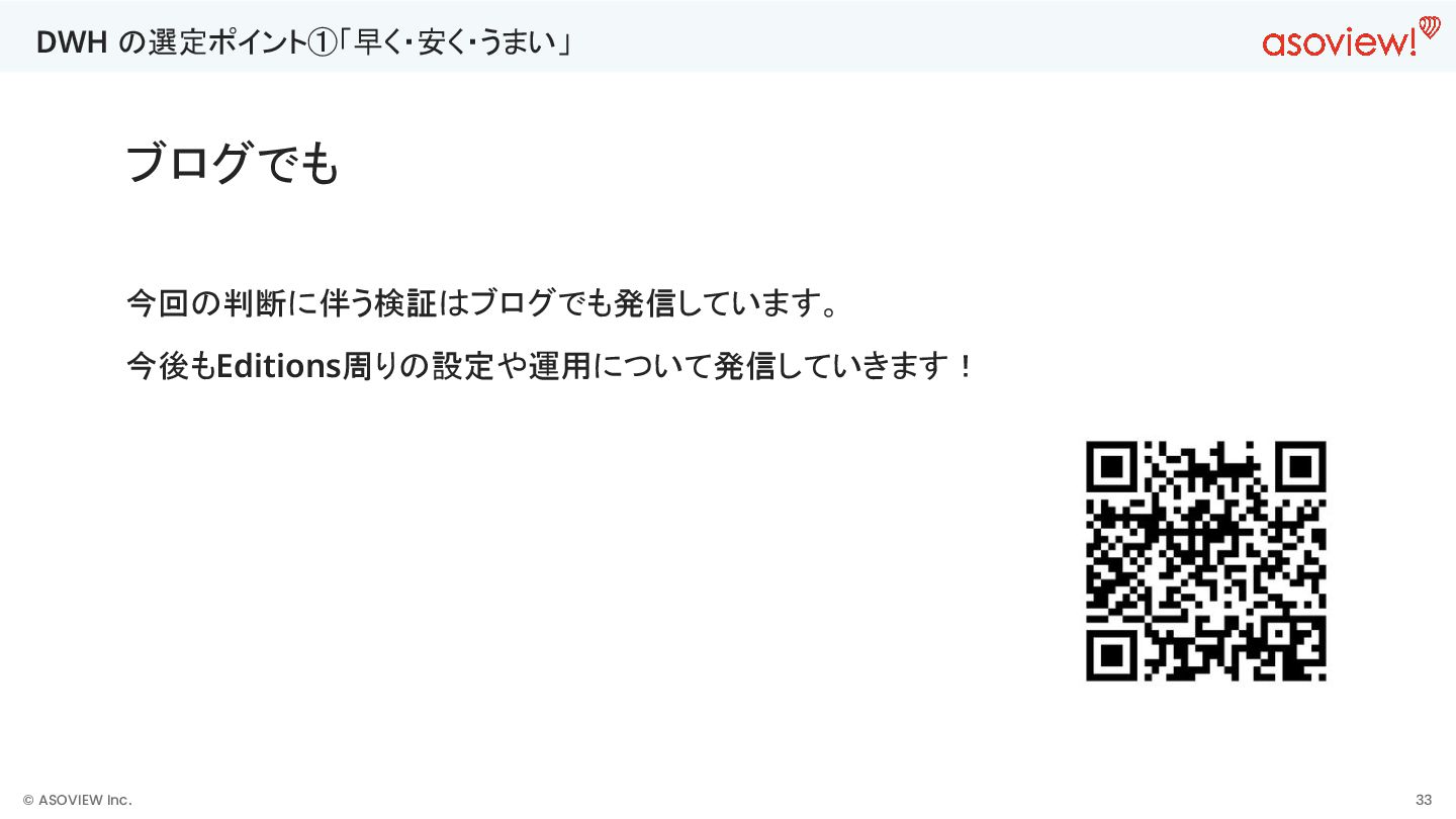 比較検討した DWH との致命的な価格差が Editions を採用することで出なかった。