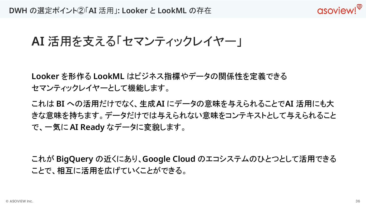 DWH の選定ポイント②「AI 活用」: Looker と LookML の存在