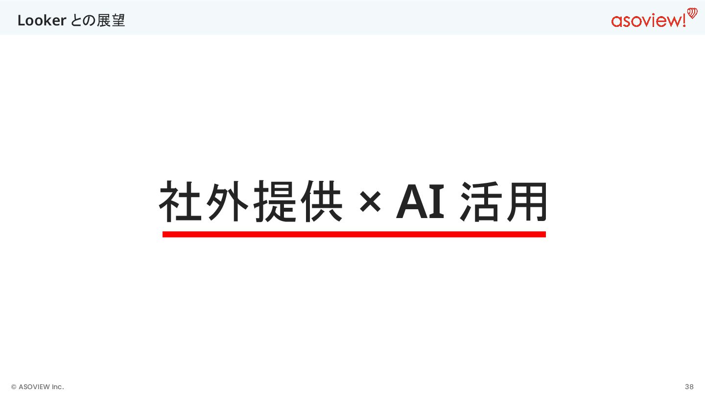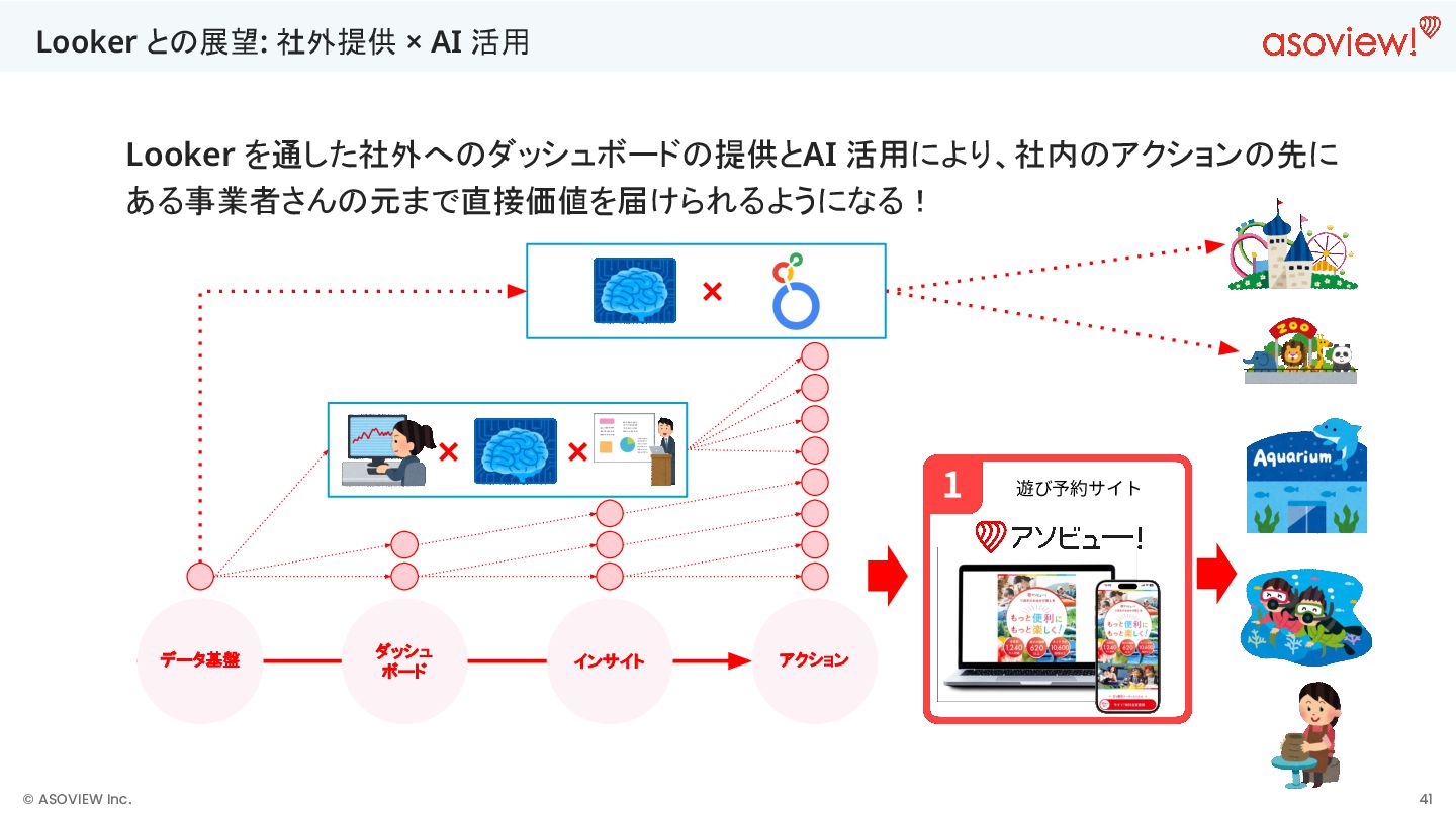 28. © ASOVIEW Inc. 41 Looker を通した社外へのダッシュボードの提供と AI 活用により、社内のアクションの先に ある事業者さんの元まで直接価値を届けられるようになる!