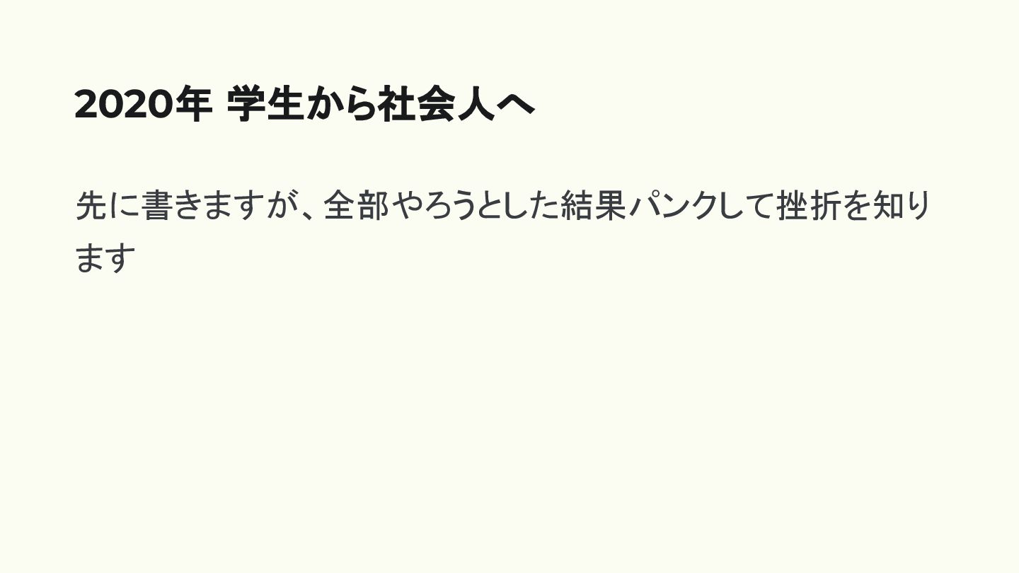 先に書きますが、全部やろうとした結果パンクして挫折を知り ます 2020年 学生から社会人へ