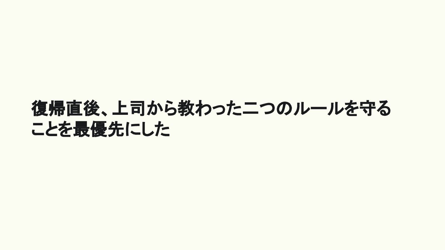 復帰直後、上司から教わった二つのルールを守る ことを最優先にした