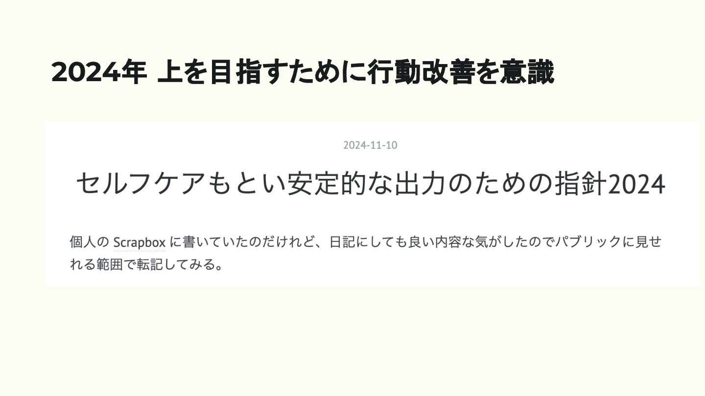 ◦ それが小さな励みともなっている ◦ 逆にそういった「気配」を振りまく側にもなっていきたい 色々あったが「出力先」を持ち続けてきた