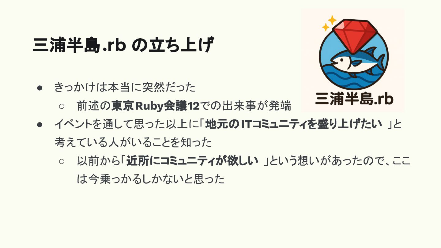 」という想いがあったので、ここ は今乗っかるしかないと思った 三浦半島.rb の立ち上げ