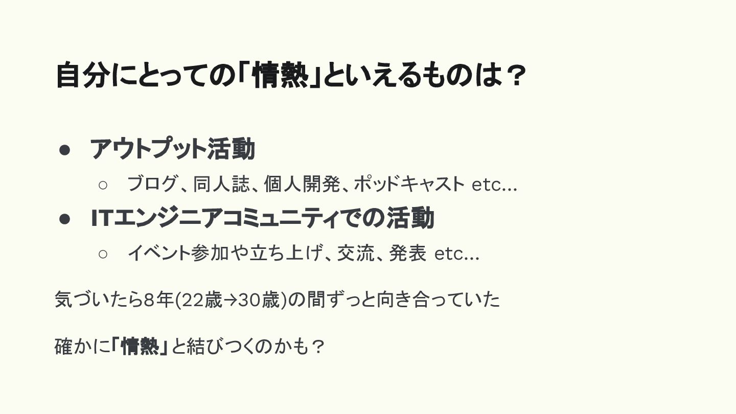 思い切りの情熱、 私なりのアウトプット活動と コミュニティの向き合い方について