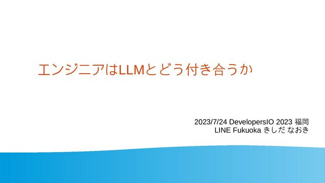 エンジニアはLLMとどう付き合うか 2023/7/24 DevelopersIO 2023 福岡 LINE Fukuoka きしだ なおき