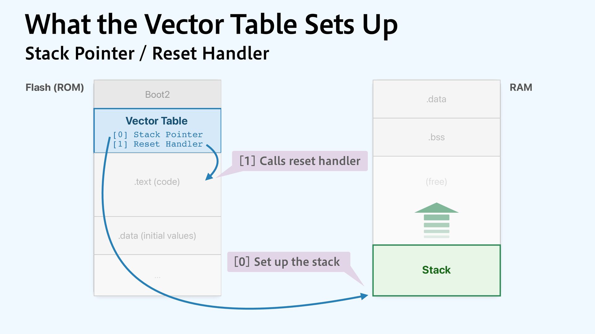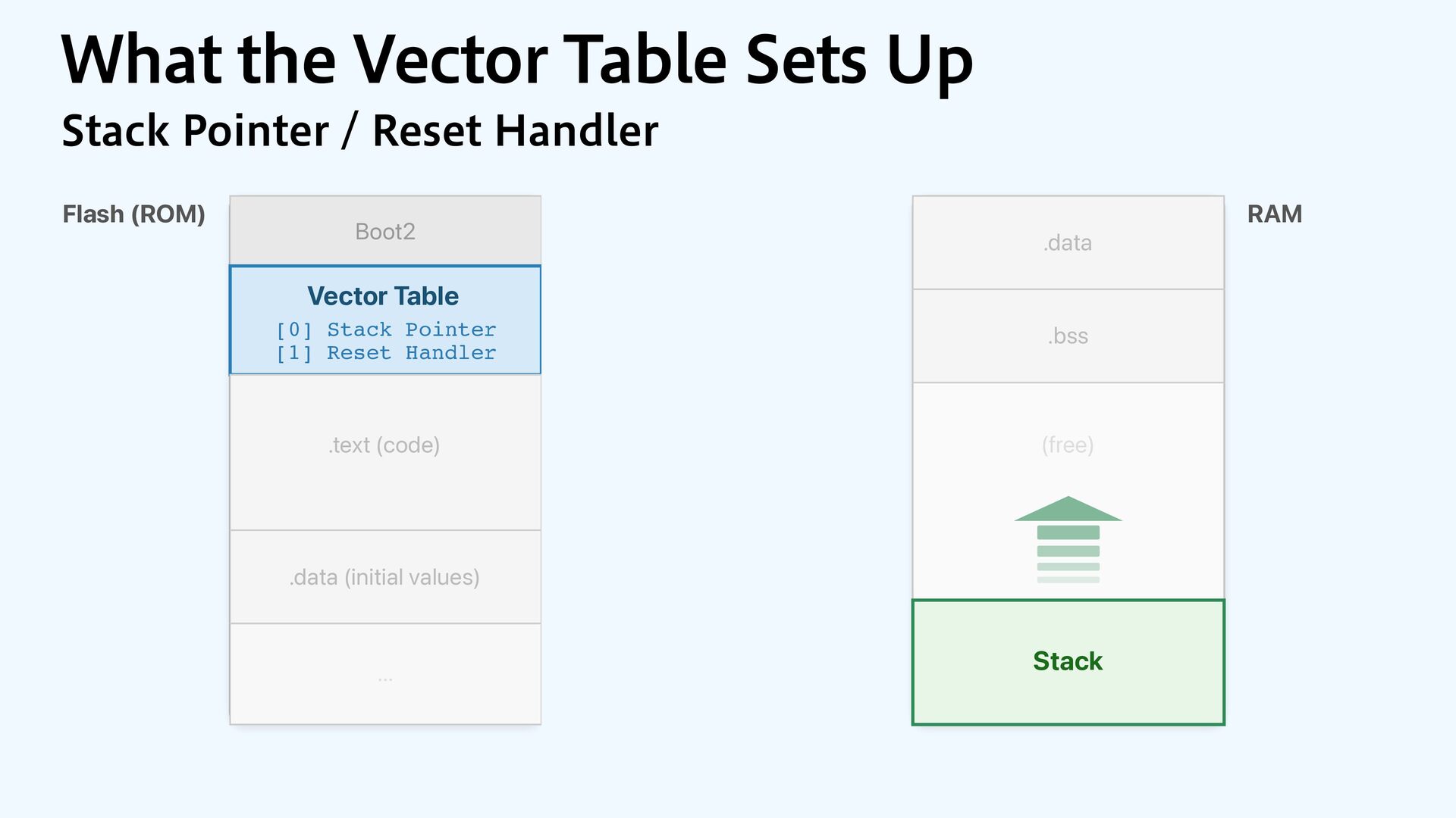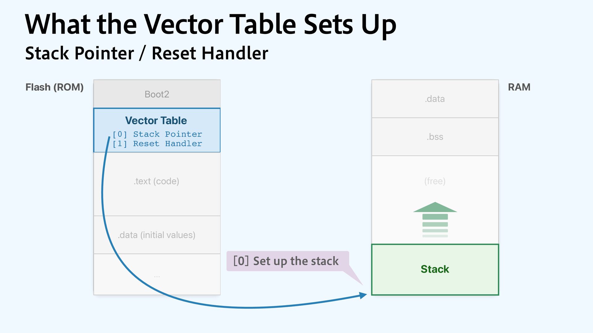to RAM var src = dataOrigin var dst = dataStart while dst != dataEnd { dst.pointee = src.pointee dst = dst.advanced(by: 1) src = src.advanced(by: 1) } // Zero out the rest while dst != bssEnd { dst.pointee = 0 dst = dst.advanced(by: 1) } } JOJUJBMJ[F.FNPSZ4FDUJPOT $PQZBOE[FSP fi MM