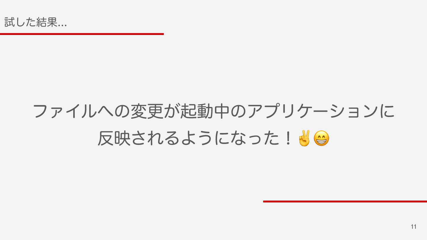 11 ࢼͨ݁͠Ռ ϑΝΠϧͷมߋ͕ىಈதͷΞϓϦέʔγϣϯʹ ө͞ΕΔΑ͏ʹͳͬͨʂ✌😁
