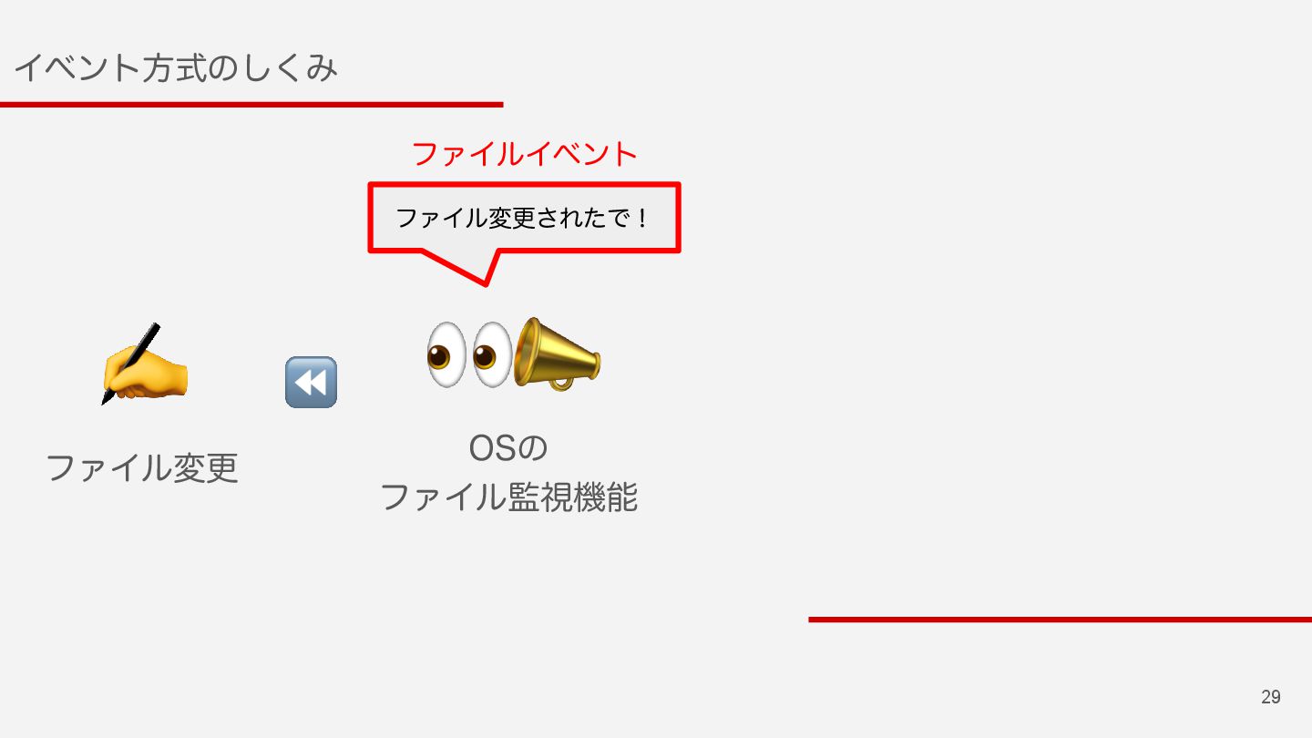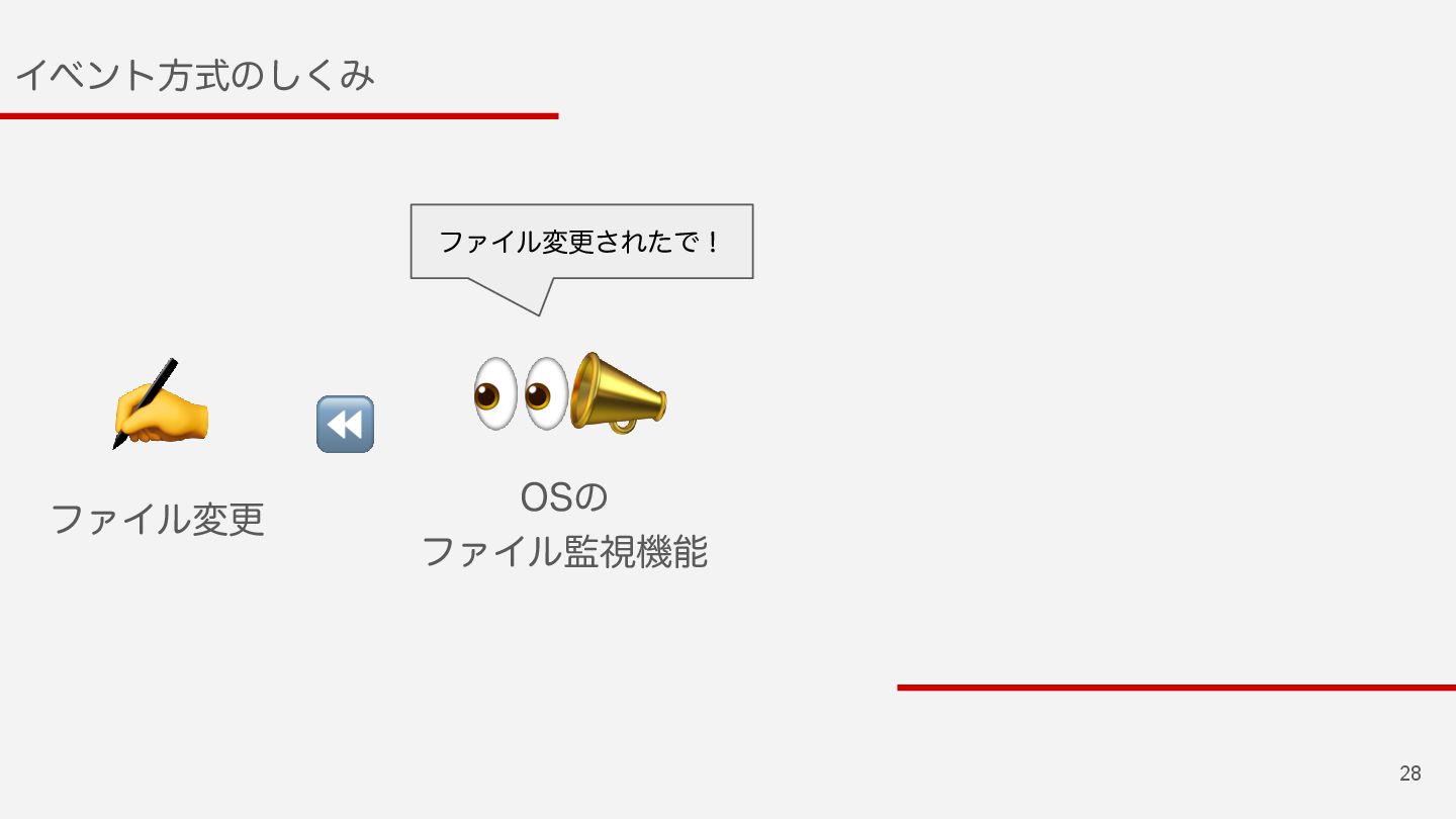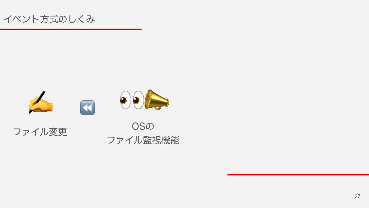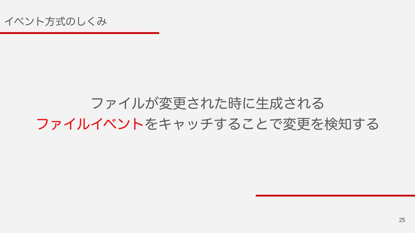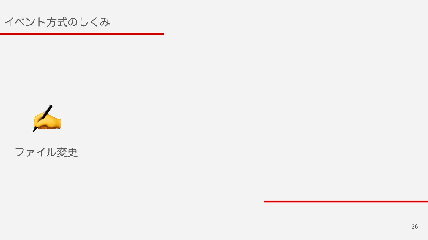 25 Πϕϯτํࣜͷ͘͠Έ ϑΝΠϧ͕มߋ͞Εͨ࣌ʹੜ͞ΕΔ ϑΝΠϧΠϕϯτΛΩϟον͢Δ͜ͱͰมߋΛݕ͢Δ