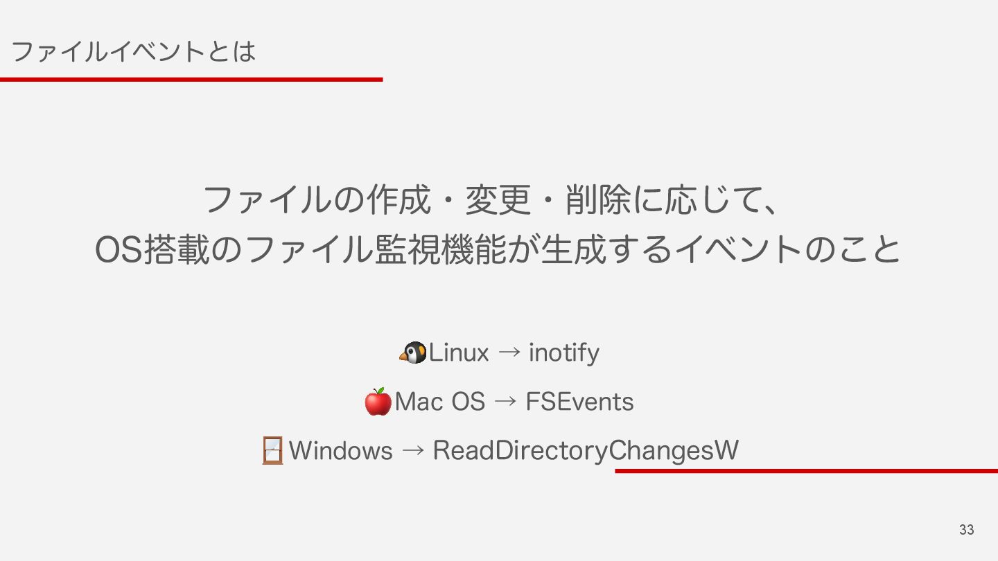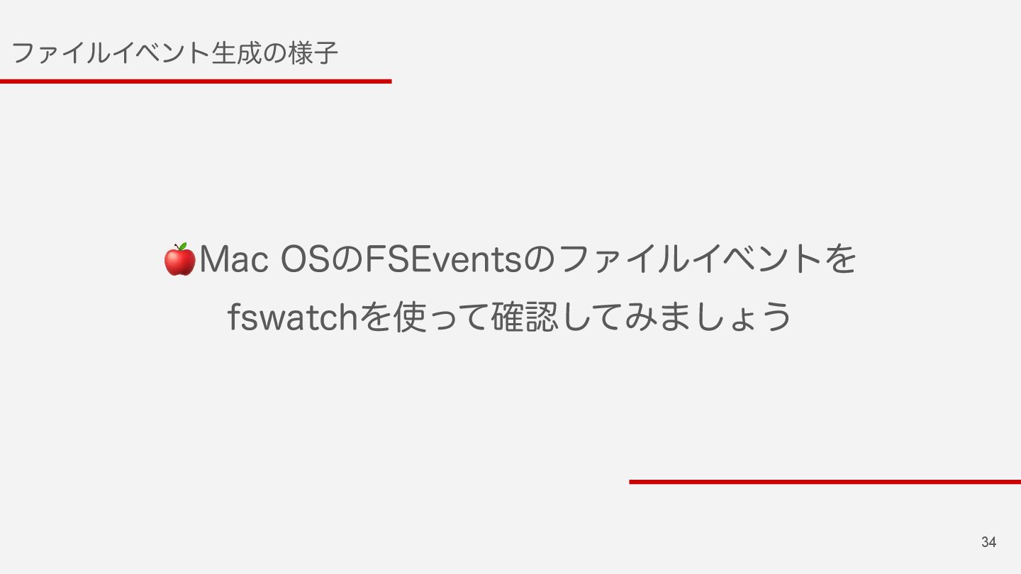 33 ϑΝΠϧΠϕϯτͱ ϑΝΠϧͷ࡞ɾมߋɾআʹԠͯ͡ɺ 04ࡌͷϑΝΠϧࢹػೳ͕ੜ͢ΔΠϕϯτͷ͜ͱ 🐧 -JOVYˠJOPUJGZ 🍎 .BD04ˠ'4&WFOUT 🪟 8JOEPXTˠ3FBE%JSFDUPSZ$IBOHFT8