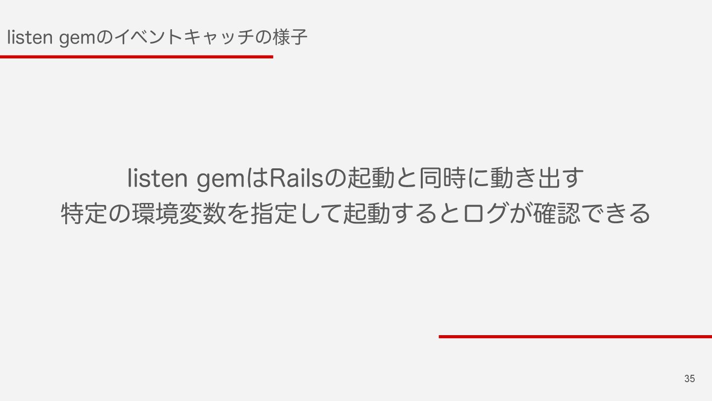 35 MJTUFOHFNͷΠϕϯτΩϟονͷ༷ࢠ MJTUFOHFN3BJMTͷىಈͱಉ࣌ʹಈ͖ग़͢ ಛఆͷڥมΛࢦఆͯ͠ىಈ͢Δͱϩά͕֬ೝͰ͖Δ