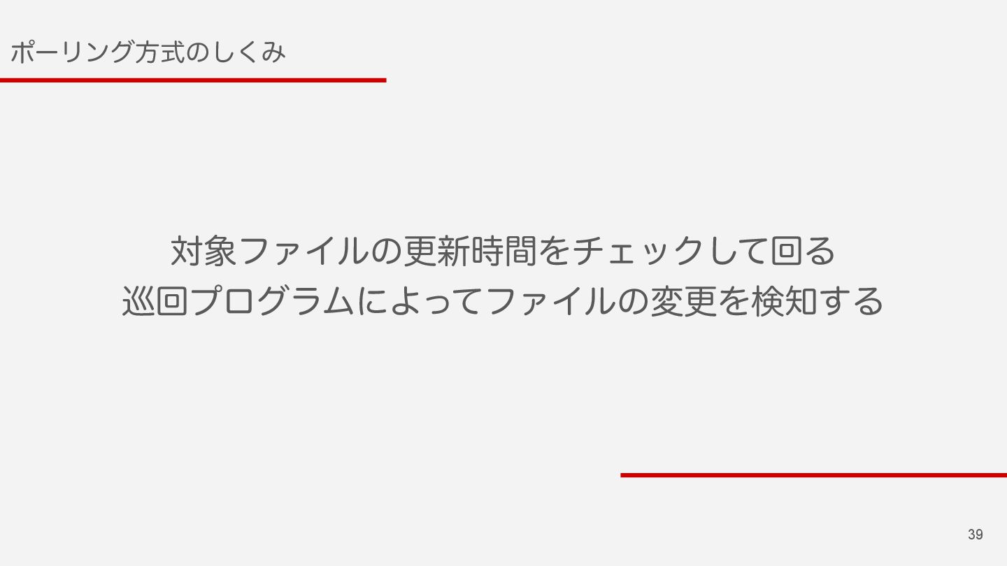 38 3BJMTͷϑΝΠϧݕํ๏ Πϕϯτํࣜ "DUJWF4VQQPSU&WFOUFE'JMF6QEBUF$IFDLFS ϙʔϦϯάํࣜ "DUJWF4VQQPSU'JMF6QEBUF$IFDLFS