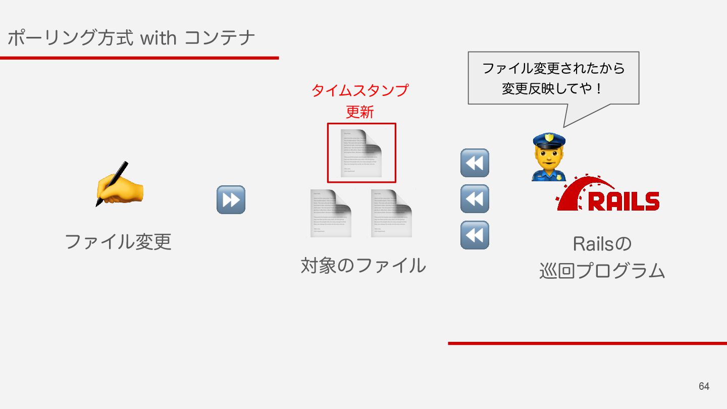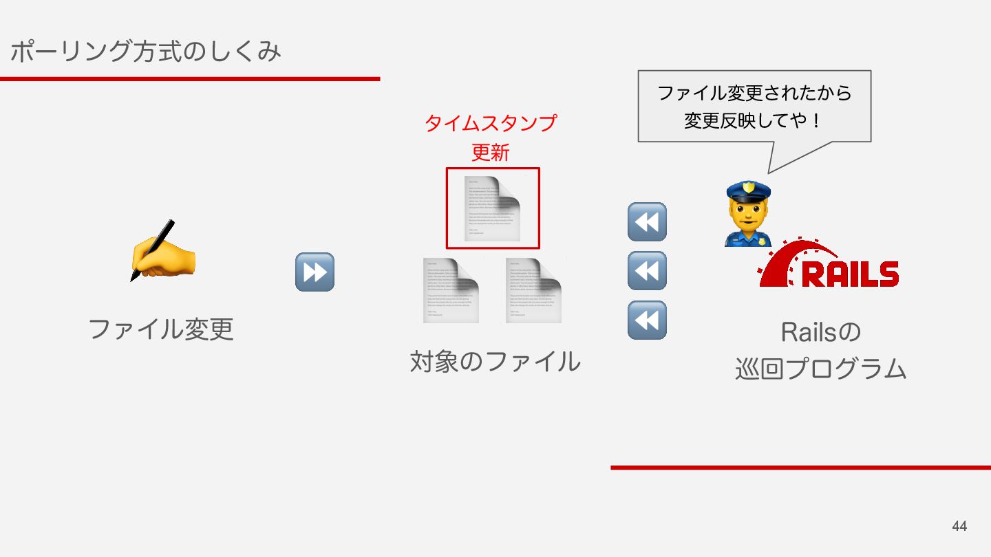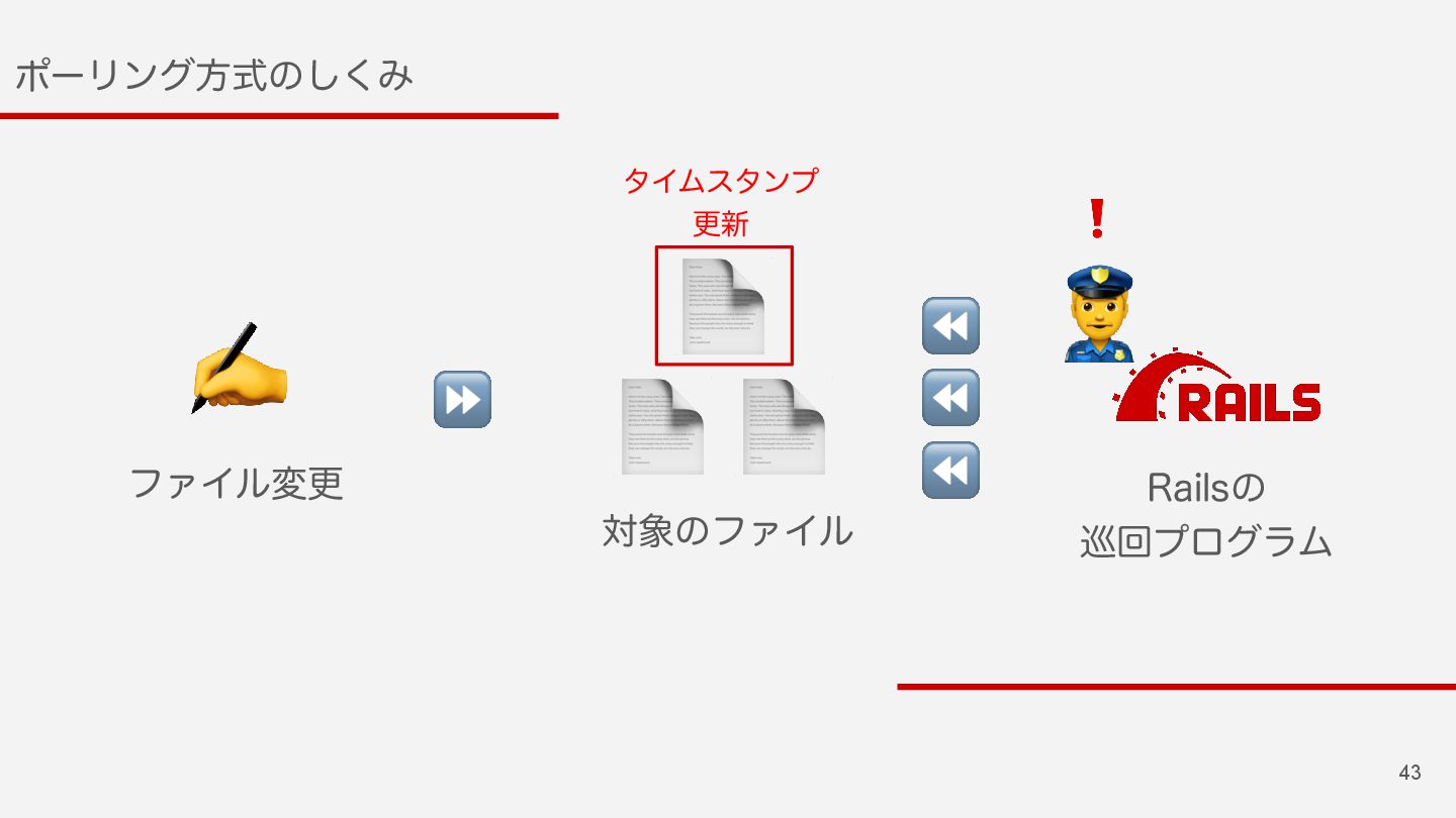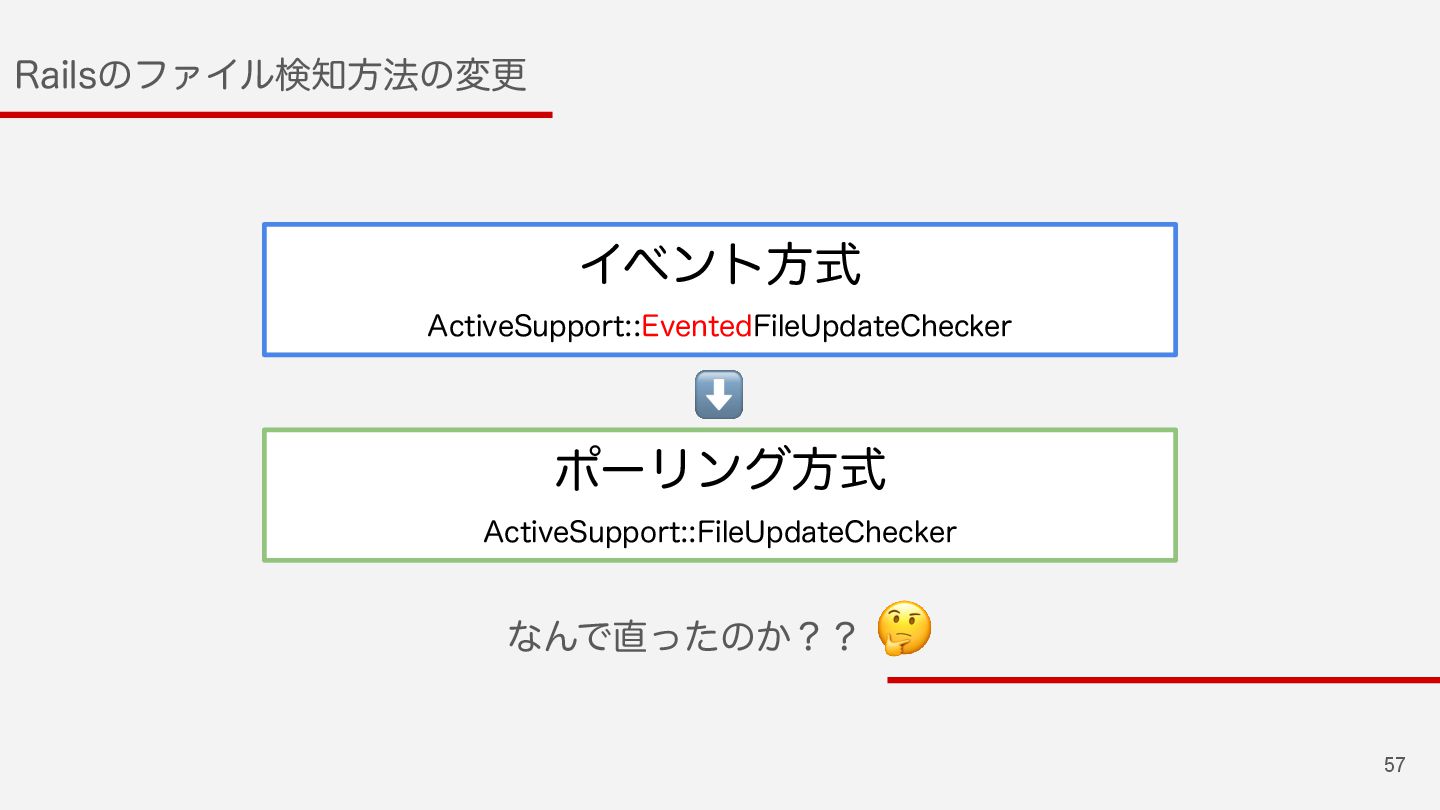 57 3BJMTͷϑΝΠϧݕํ๏ͷมߋ Πϕϯτํࣜ "DUJWF4VQQPSU&WFOUFE'JMF6QEBUF$IFDLFS ϙʔϦϯάํࣜ "DUJWF4VQQPSU'JMF6QEBUF$IFDLFS ⬇ ͳΜͰͬͨͷ͔ʁʁ 🤔