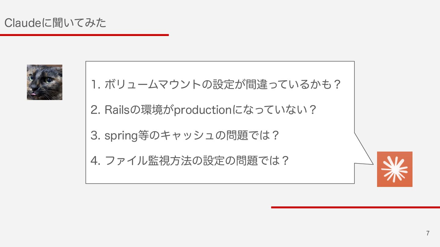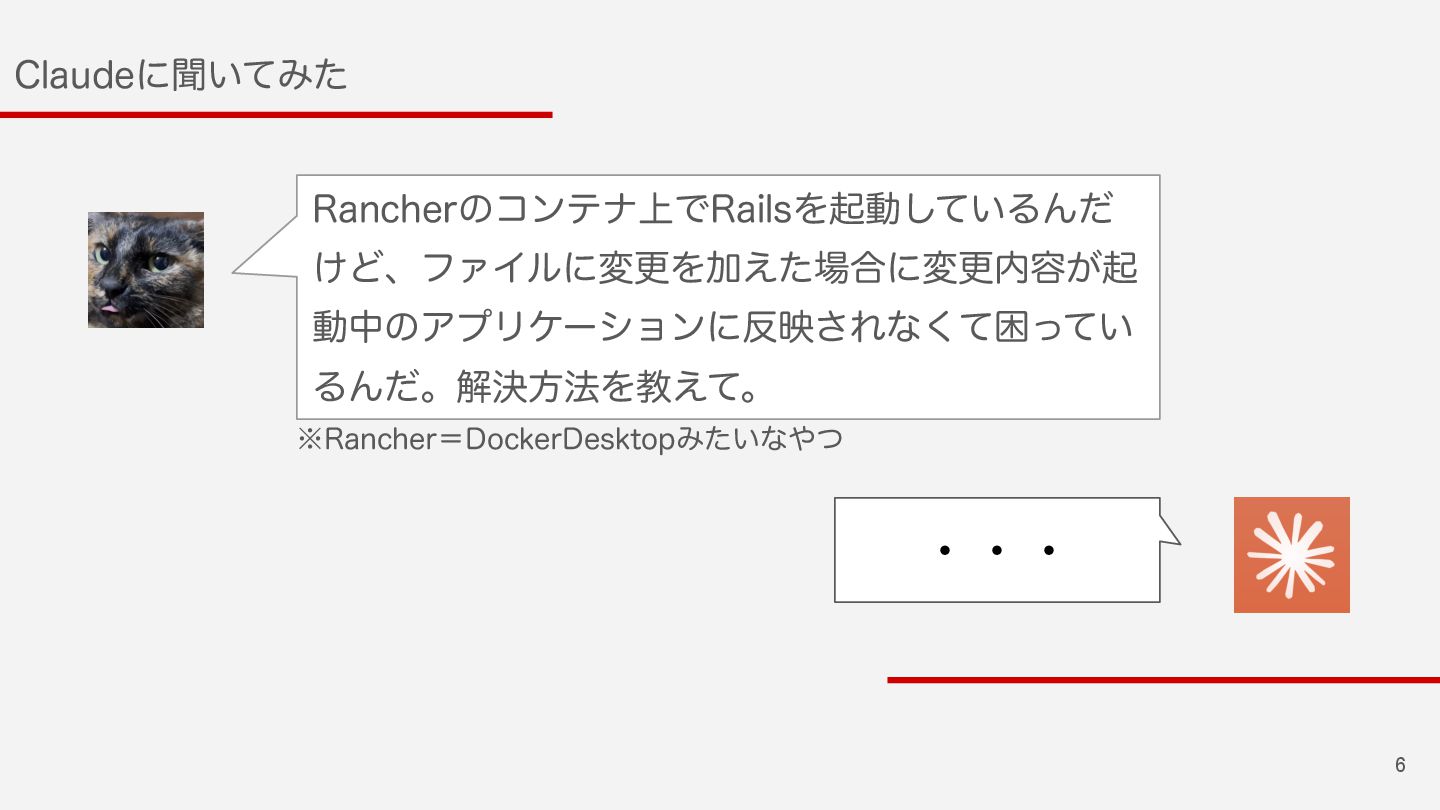 6 $MBVEFʹฉ͍ͯΈͨ 3BODIFSͷίϯςφ্Ͱ3BJMTΛىಈ͍ͯ͠ΔΜͩ ͚ͲɺϑΝΠϧʹมߋΛՃ͑ͨ߹ʹมߋ༰͕ى ಈதͷΞϓϦέʔγϣϯʹө͞Εͳͯ͘ࠔ͍ͬͯ ΔΜͩɻղܾํ๏Λڭ͑ͯɻ ɾɾɾ ˞3BODIFSʹ%PDLFS%FTLUPQΈ͍ͨͳͭ