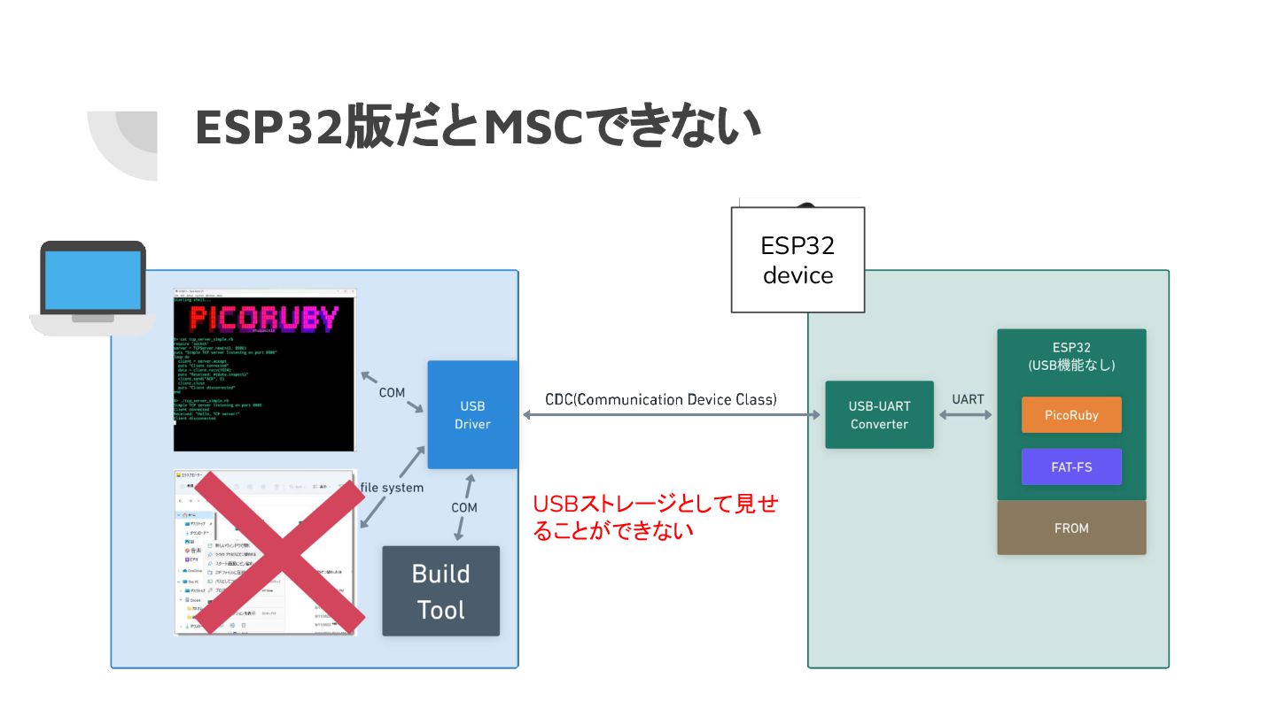 ESP32版だとMSCできない USBストレージとして見せ ることができない ESP32 device