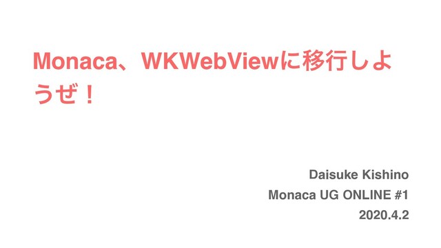MonacaɺWKWebViewʹҠߦ͠Α ͏ͥʂ Daisuke Kishino Monaca UG ONLINE #1 2020.4.2