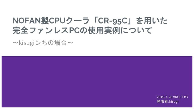 NOFAN製CPUクーラ「CR-95C」を用いた 完全ファンレスPCの使用実例について ~kisugiンちの場合~ 2019-7-26 VRCLT #3 発表者:kisugi